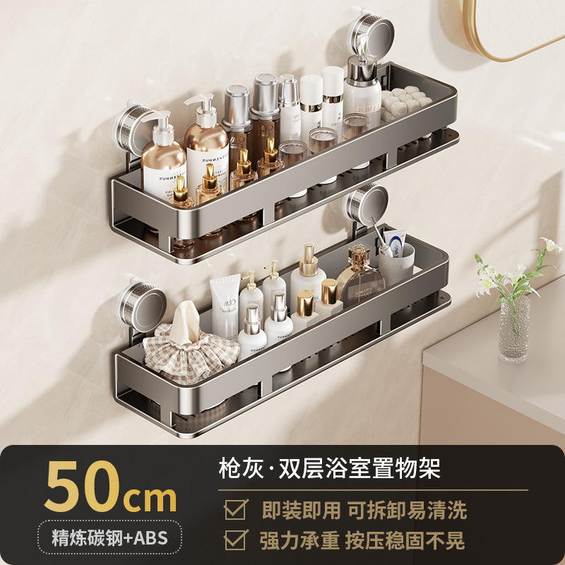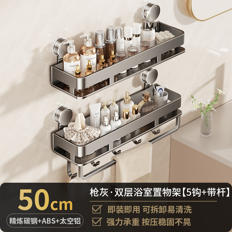 [suction cup-gun gray] double layer 50cm +5 hooks +1 towel bar
