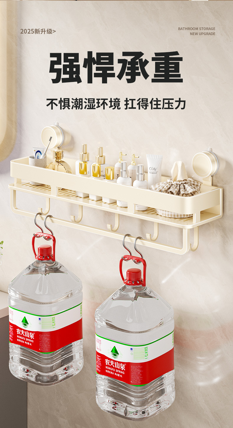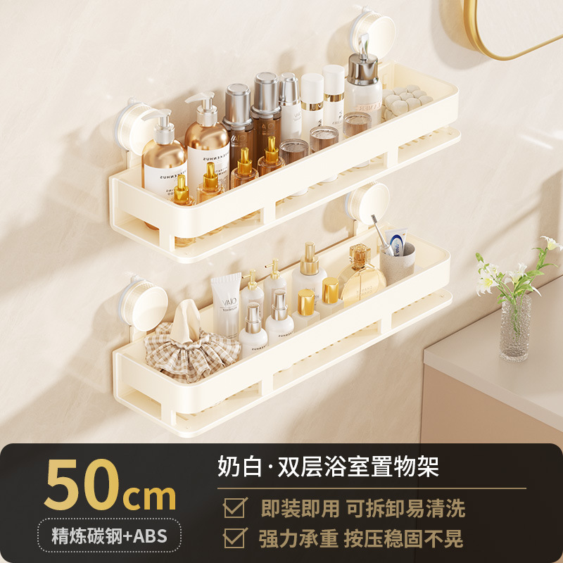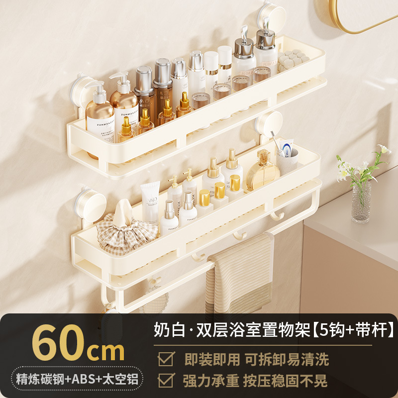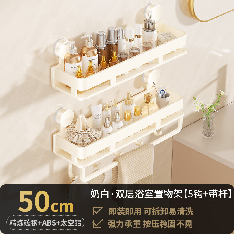 [suction cup-cream white] double layer 50cm +5 hooks +1 towel bar