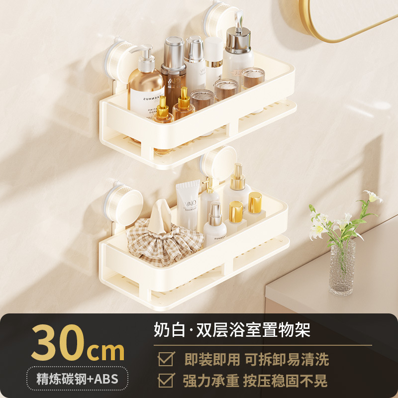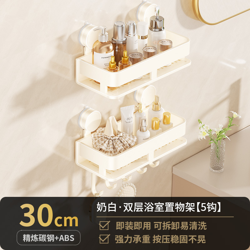 [suction cup-cream white] double layer 30cm +5 hooks +1 towel bar