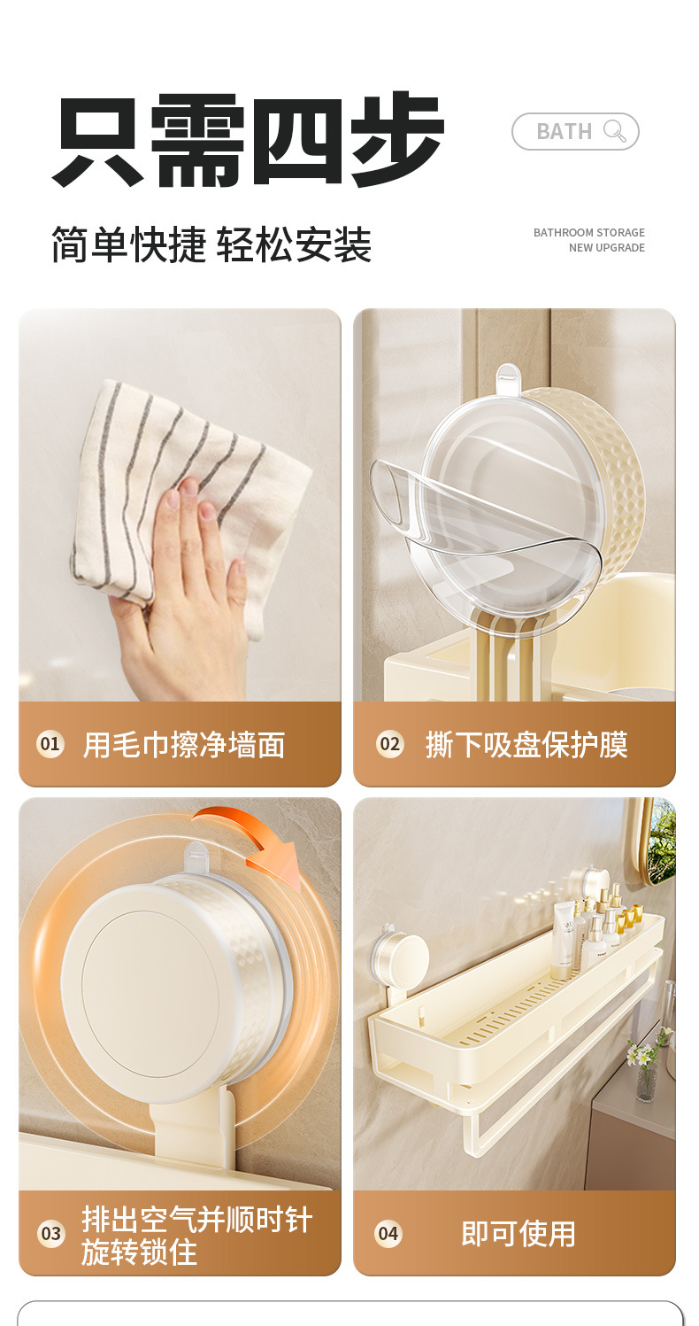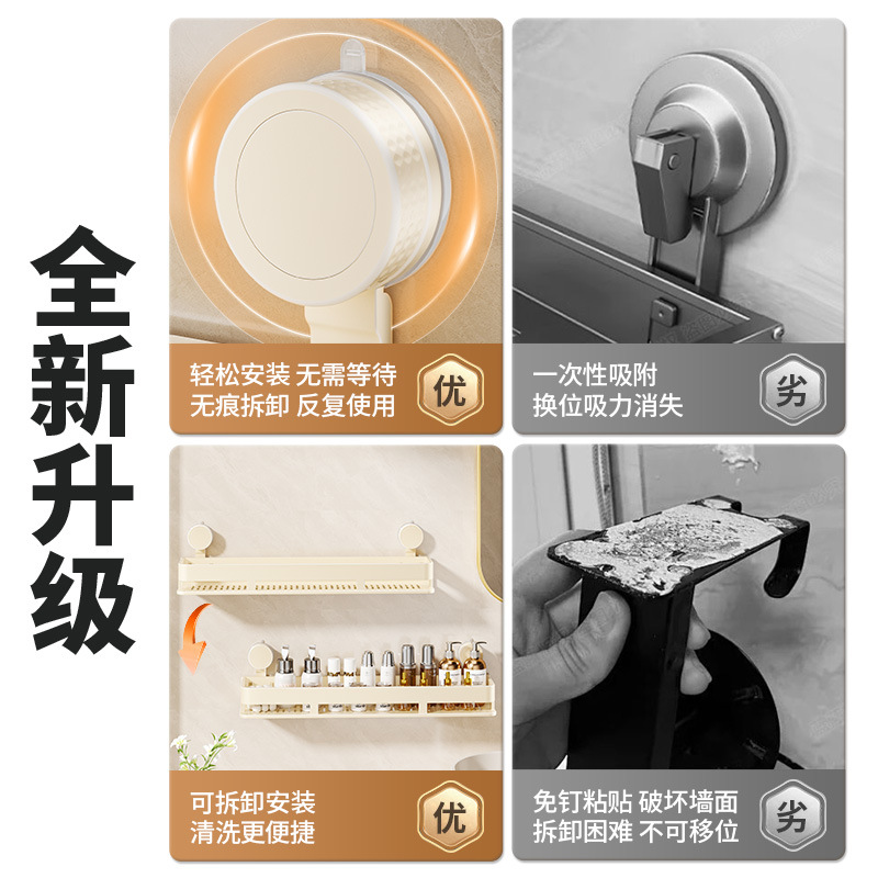 [suction cup-cream white] single layer 50cm +5 hooks +1 towel bar