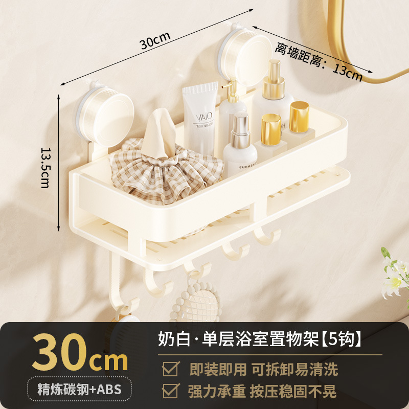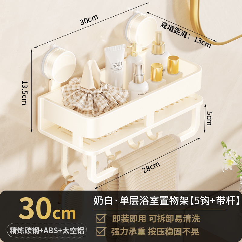 [suction cup-cream white] single layer 30cm +5 hooks +1 towel bar
