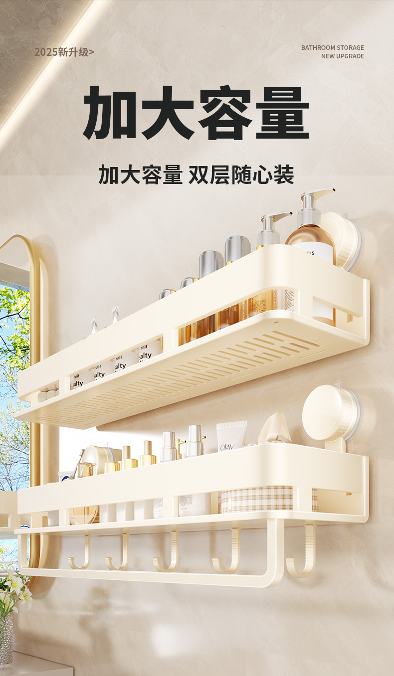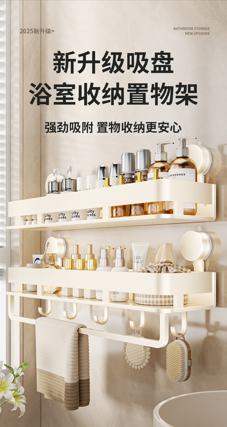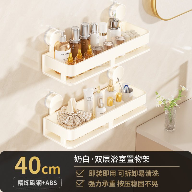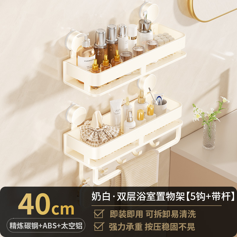 [suction cup-cream white] double layer 40cm +5 hooks +1 towel bar
