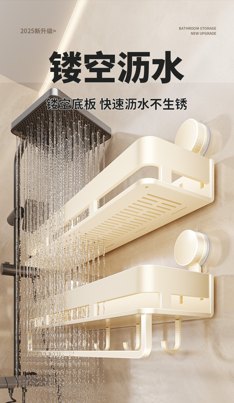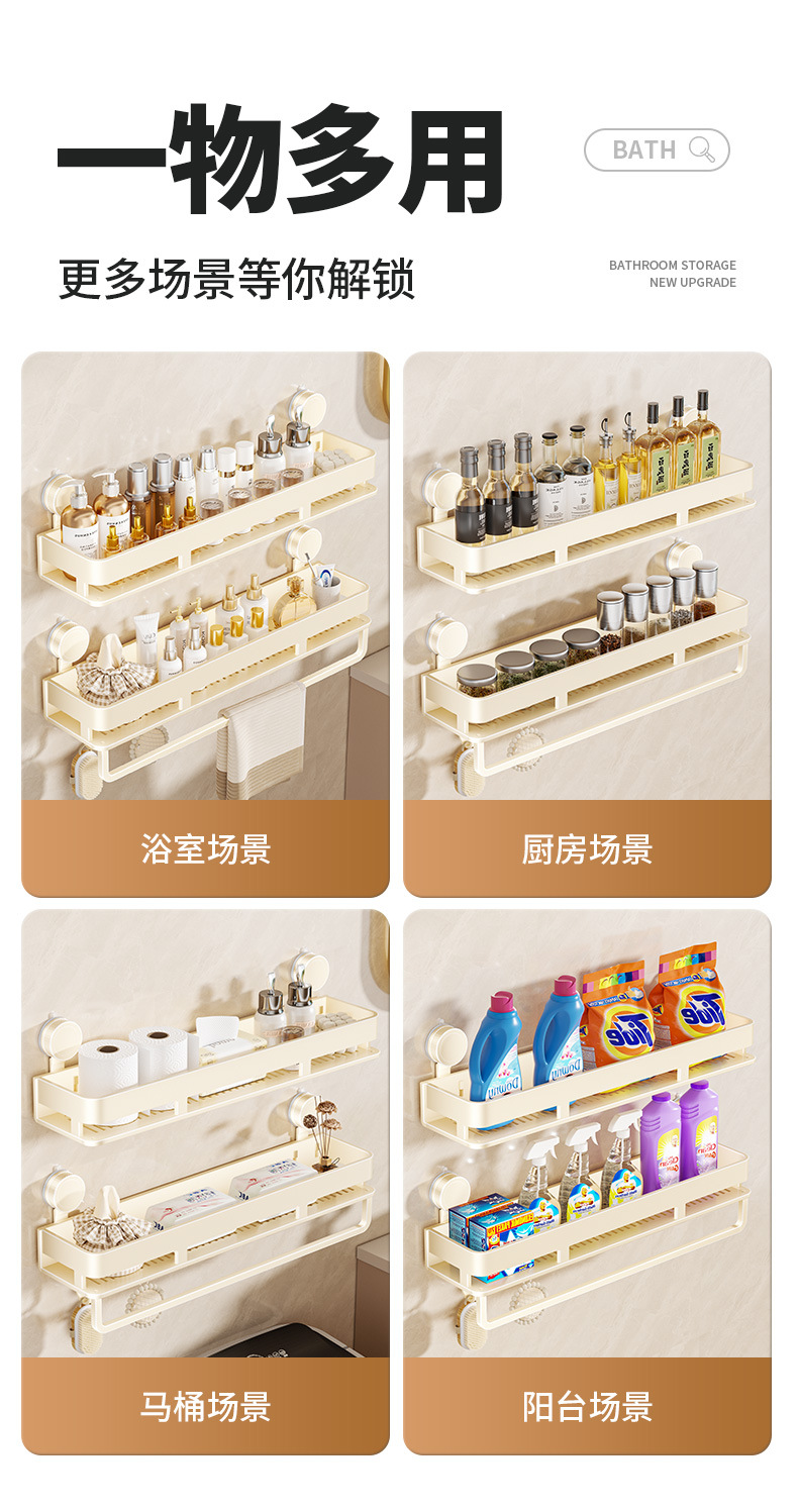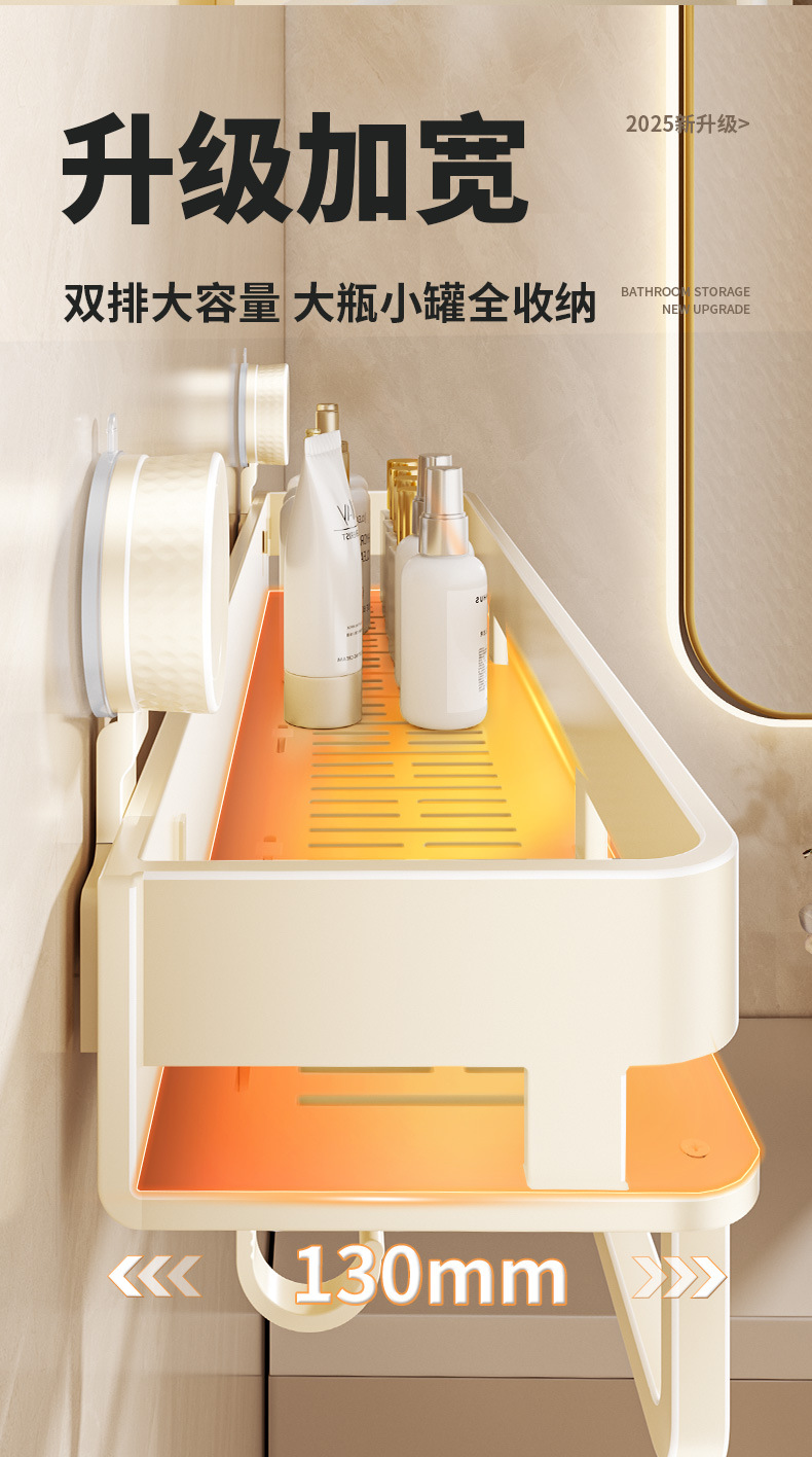 [suction cup-cream white] double layer 40cm +5 hooks +1 towel bar