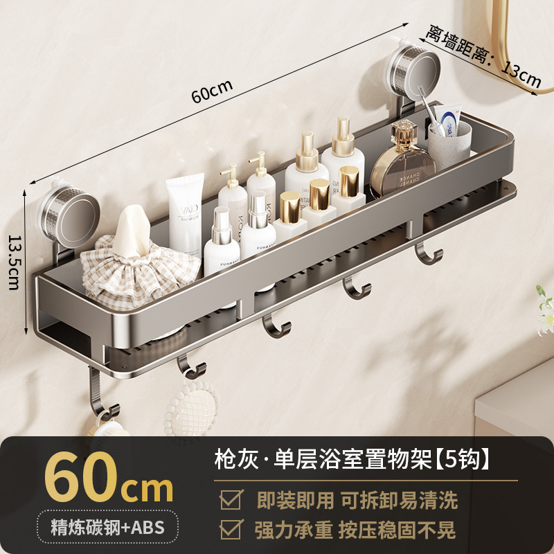 [suction cup-gun gray] single layer 60cm +5 hooks +1 towel bar