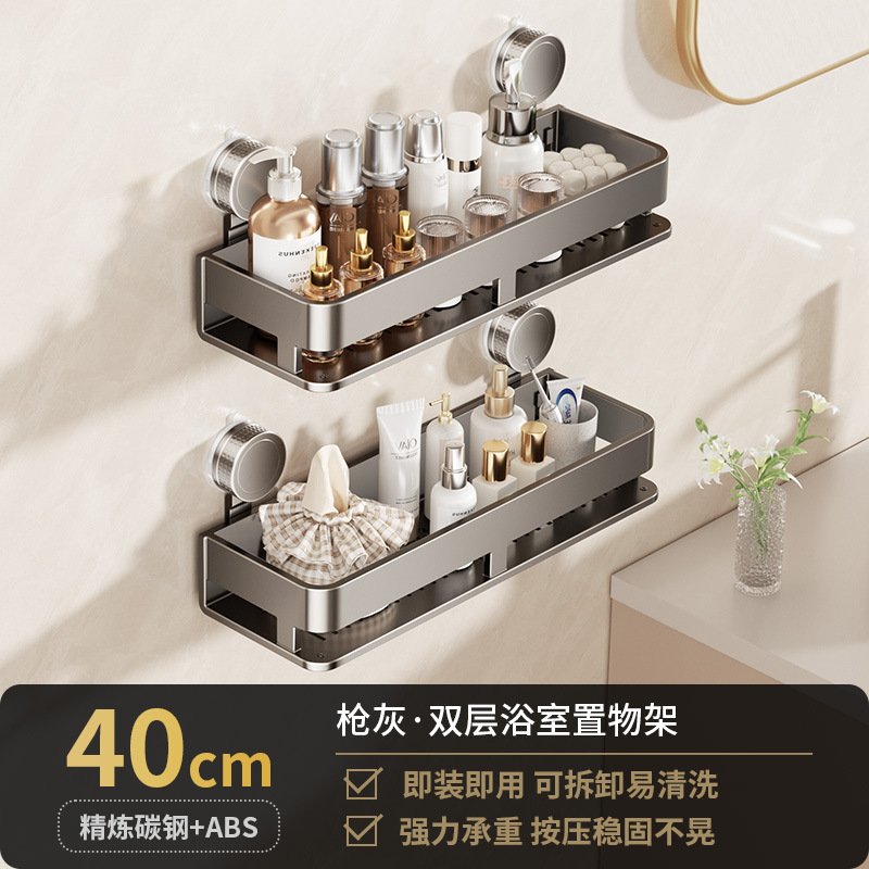 [suction cup-gun gray] double layer 40cm +5 hooks +1 towel bar