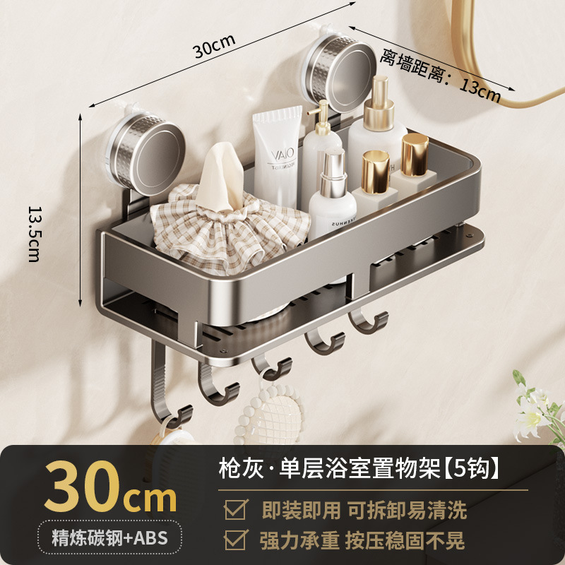 [suction cup-gun gray] single layer 30cm +5 hooks +1 towel bar