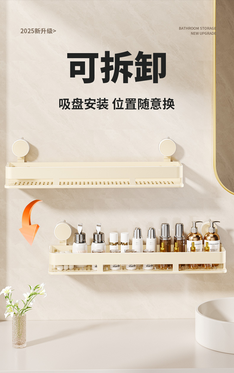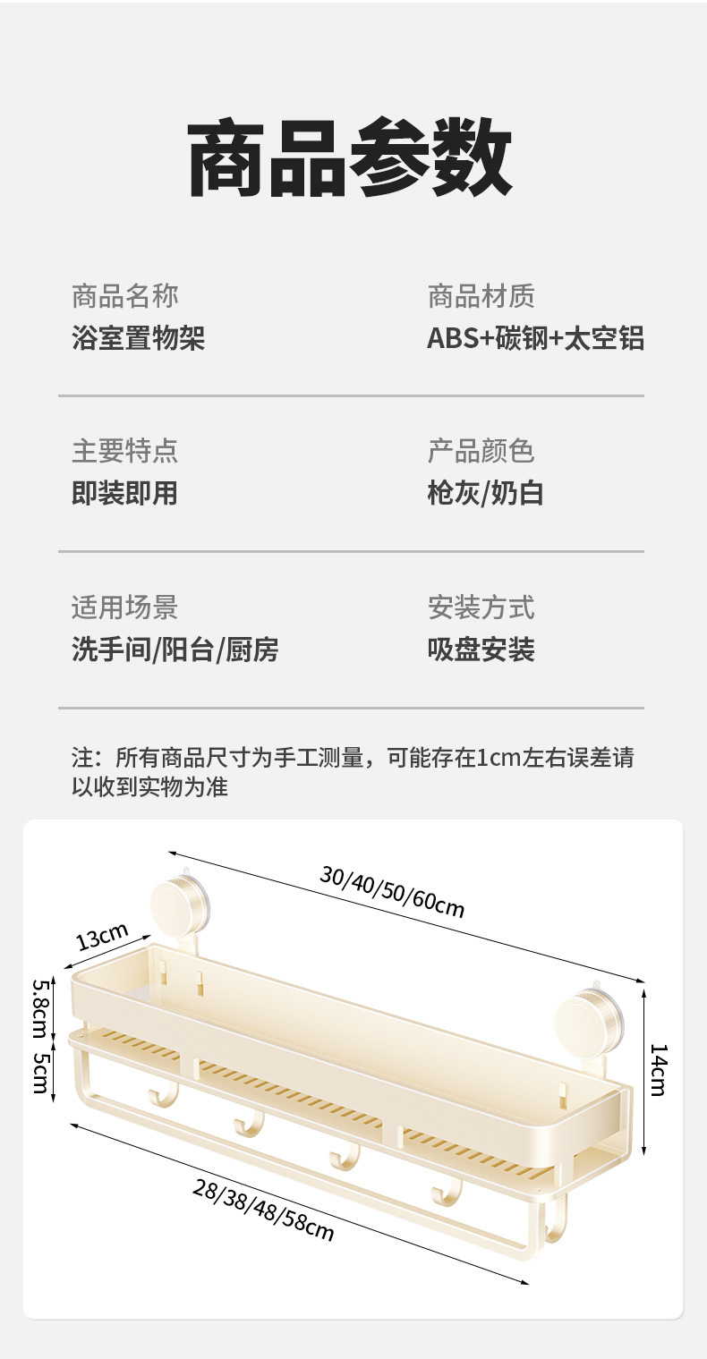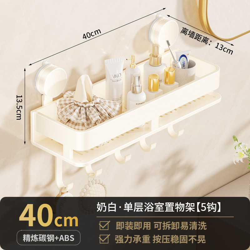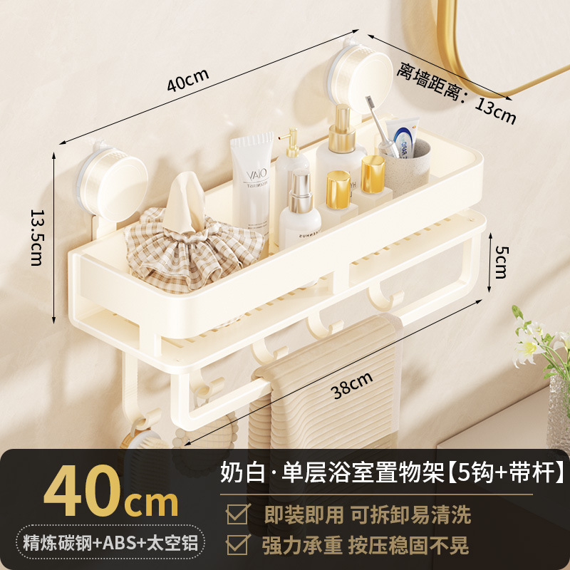 [suction cup-cream white] single layer 40cm +5 hooks +1 towel bar