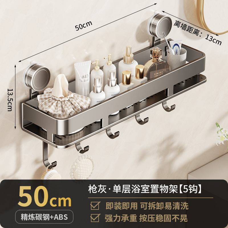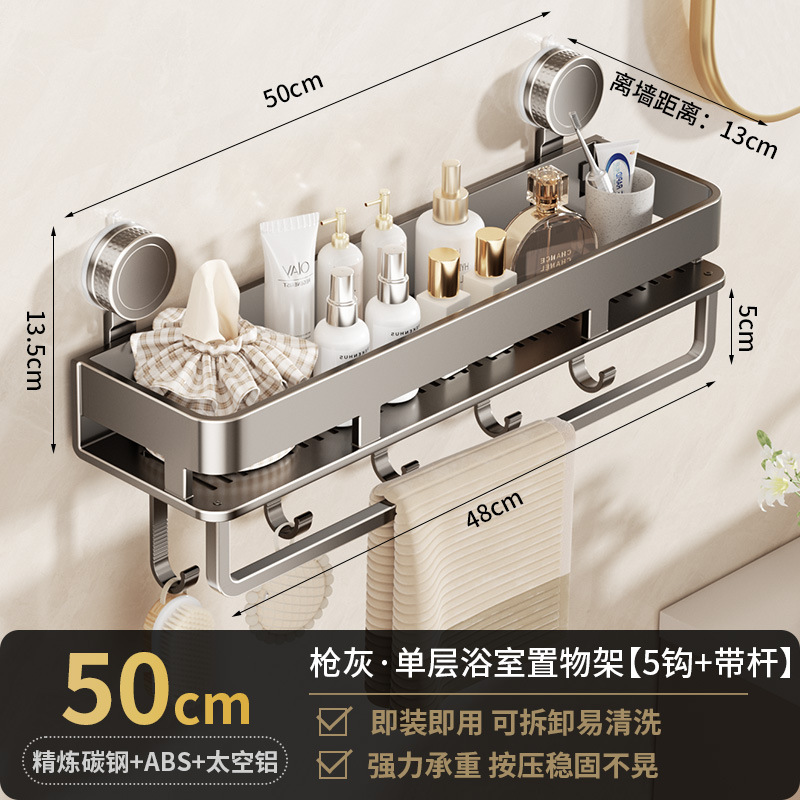 [suction cup-gun gray] single layer 50cm +5 hooks +1 towel bar
