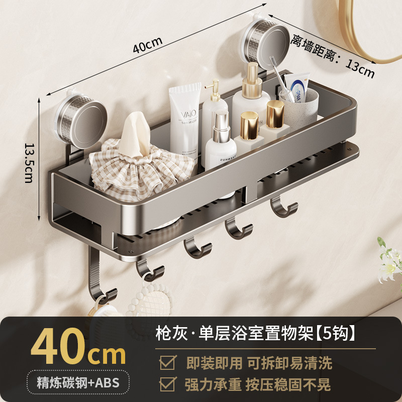 [suction cup-gun gray] single layer 40cm +5 hooks +1 towel bar