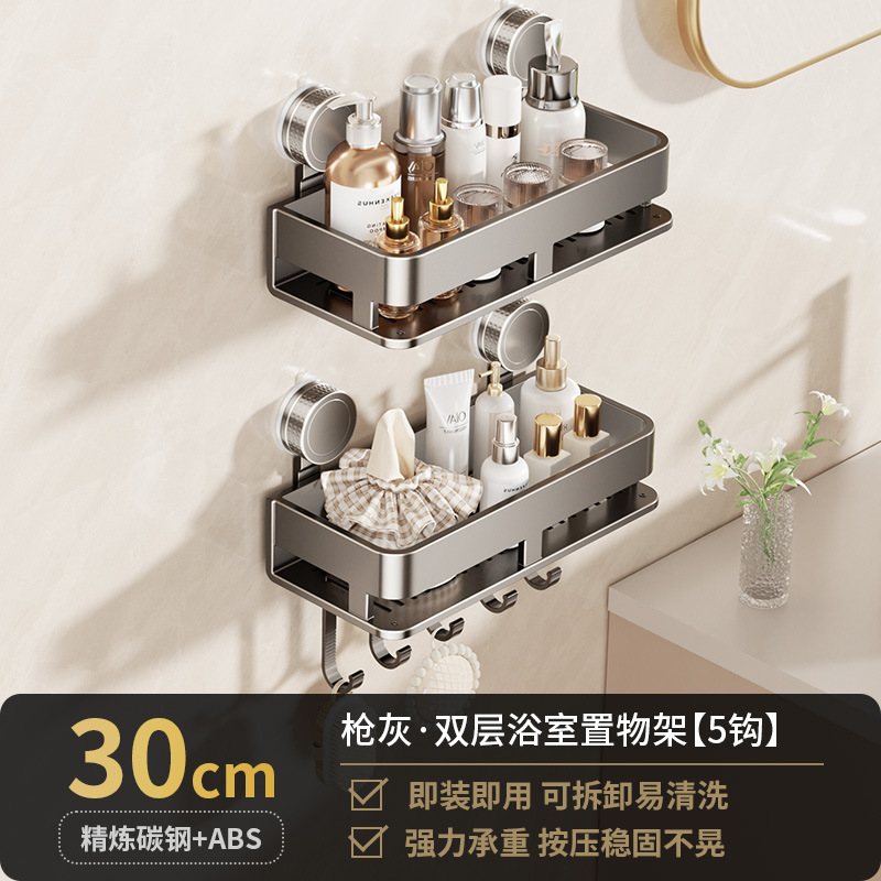 [suction cup-gun gray] double layer 30cm +5 hooks +1 towel bar