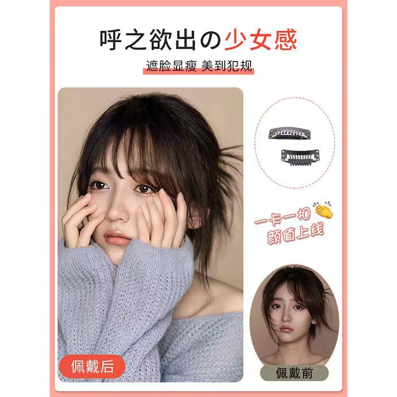 natural black/eight-character bangs