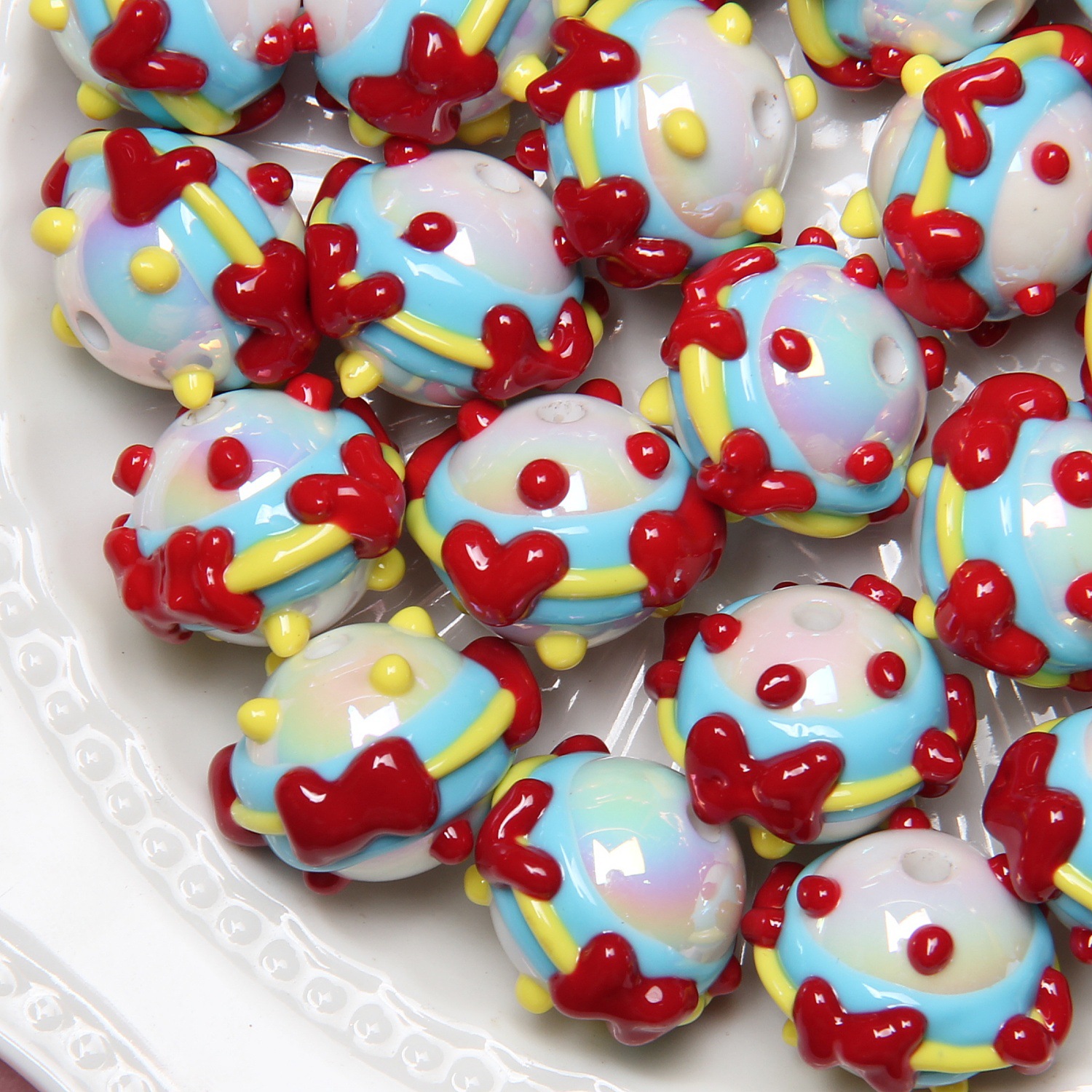 yellow beads + pink blue cream + hi
