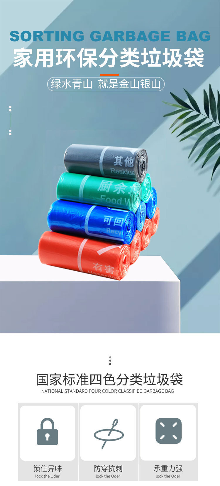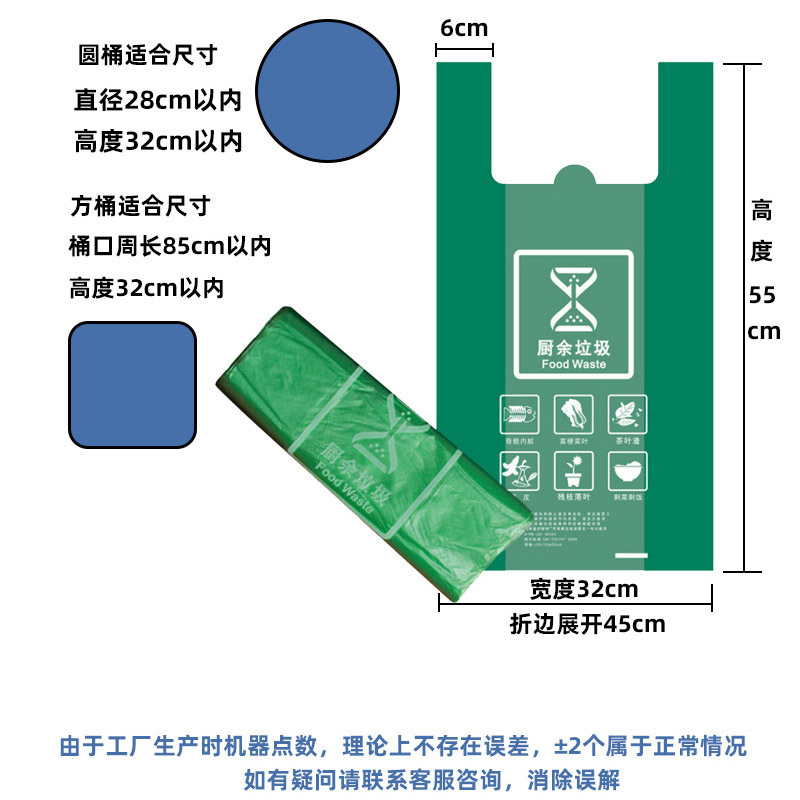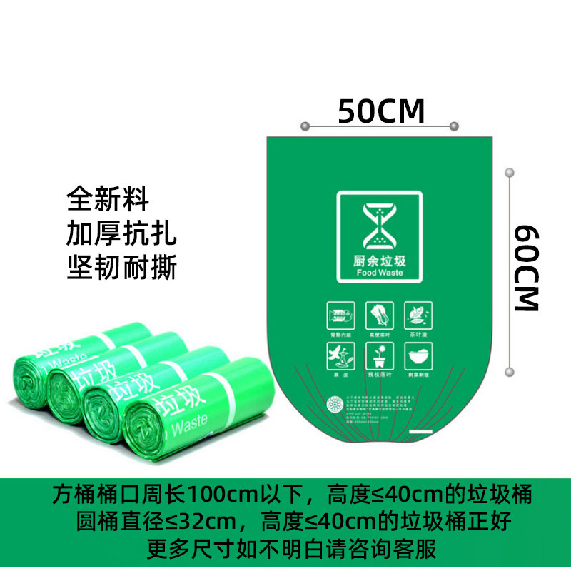 green [kitchen waste] flat mouth 50x60,20 pcs/roll