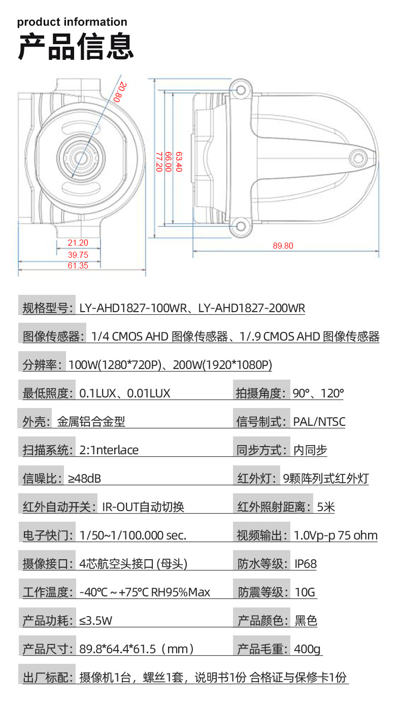 | 720p(1280*720p) 70 ° | CN¥ 88.5 | 9999 set available |