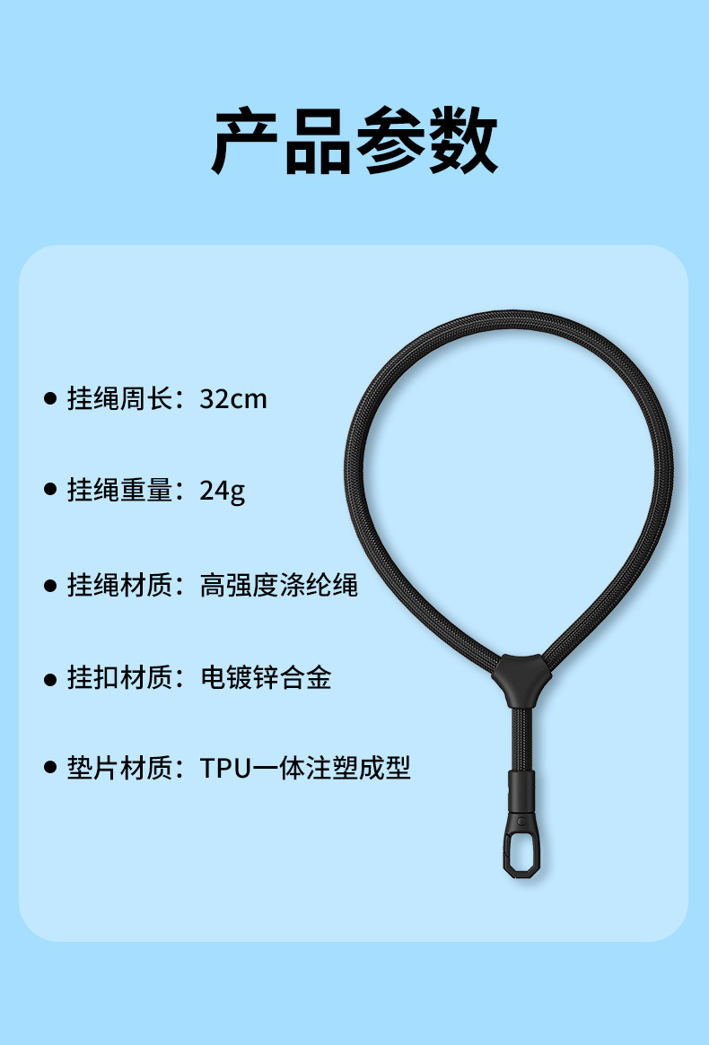 racket adjustable [360 ° rotation · classic black] 7mm strengthened rope + injection molding clip