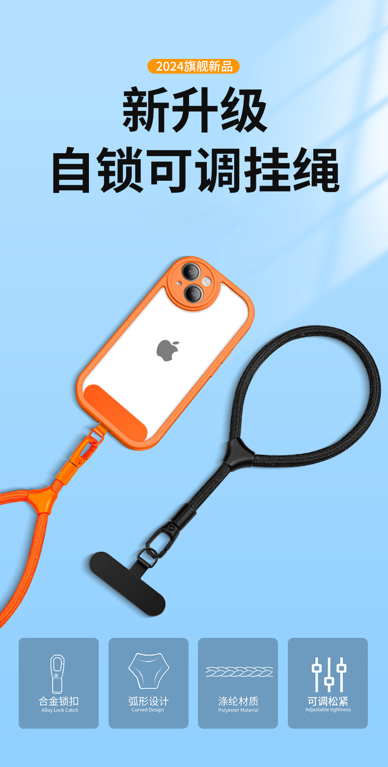 racket adjustable [360 ° rotation · emma orange] 7mm strengthened rope + injection molding clip