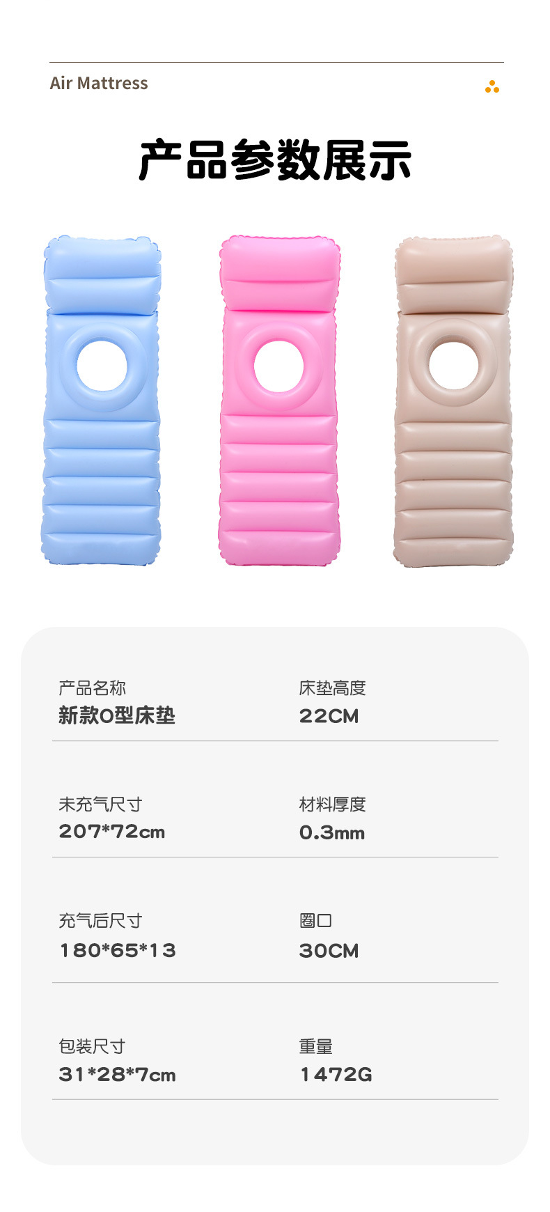 Uninflated size: 207 * 72cm material thickness 0.3mm