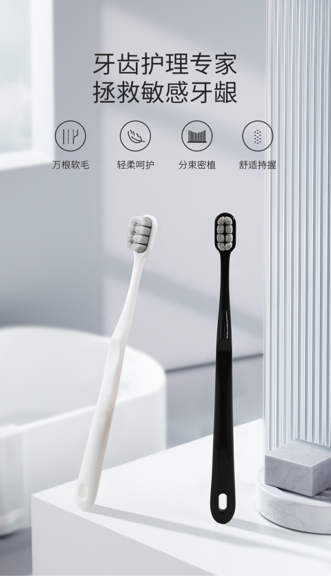 [velvet feeling soft-bristle toothbrush] white-1 piece