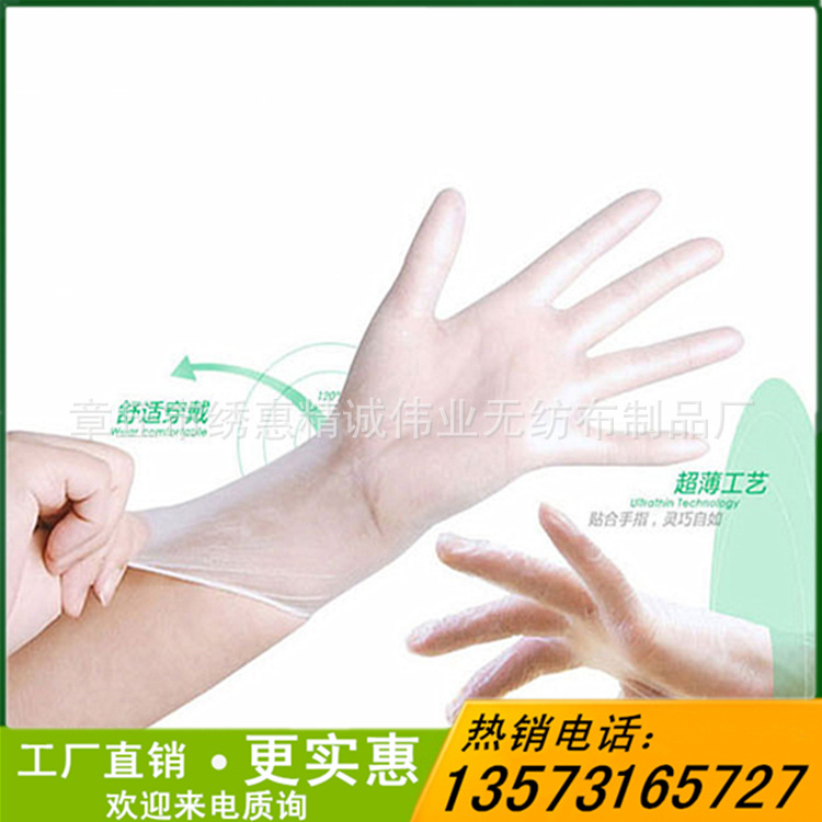 本厂是专营一次性丁腈手套、一次性PVC手套销售及无纺布条形帽、无纺布鞋套、无纺布围裙等酒店一次性用品的专业生产加工的公司,欢迎各界朋友莅临参观、指导和业务洽谈,电话13573165727,微信13573165727。