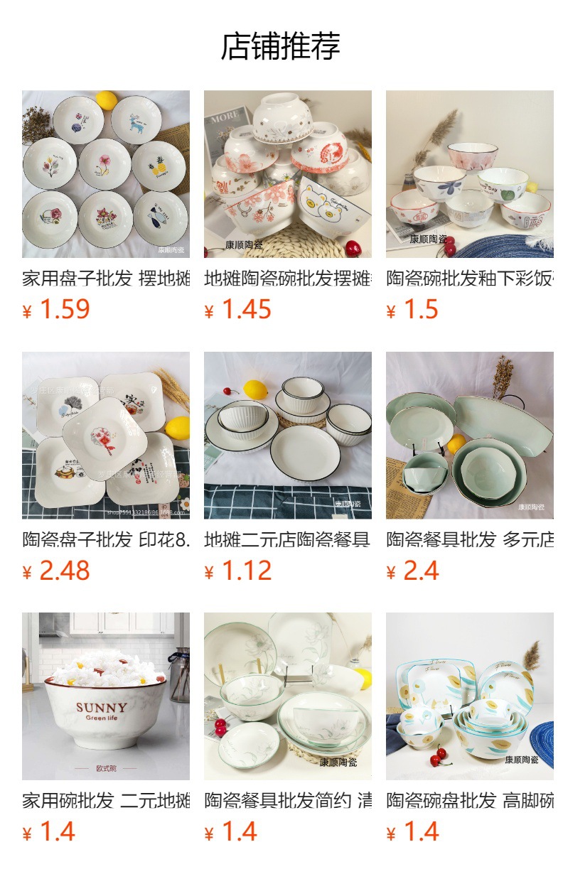 | 7-inch european style bowl (36 pcs/box) | CN¥ 5.58 | 9244 piece available |