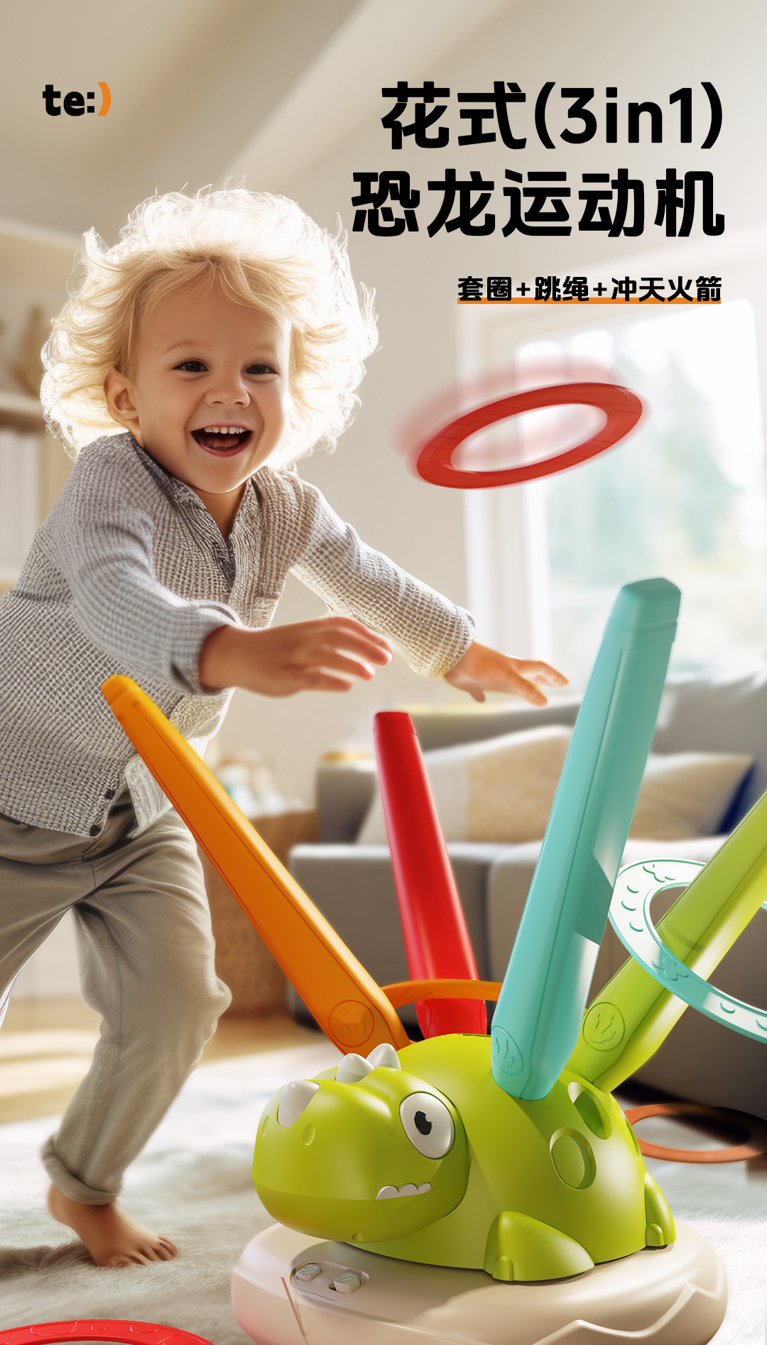 dinosaur three-in-one exercise machine (ferrule + rope skipping + skyrocket) english version