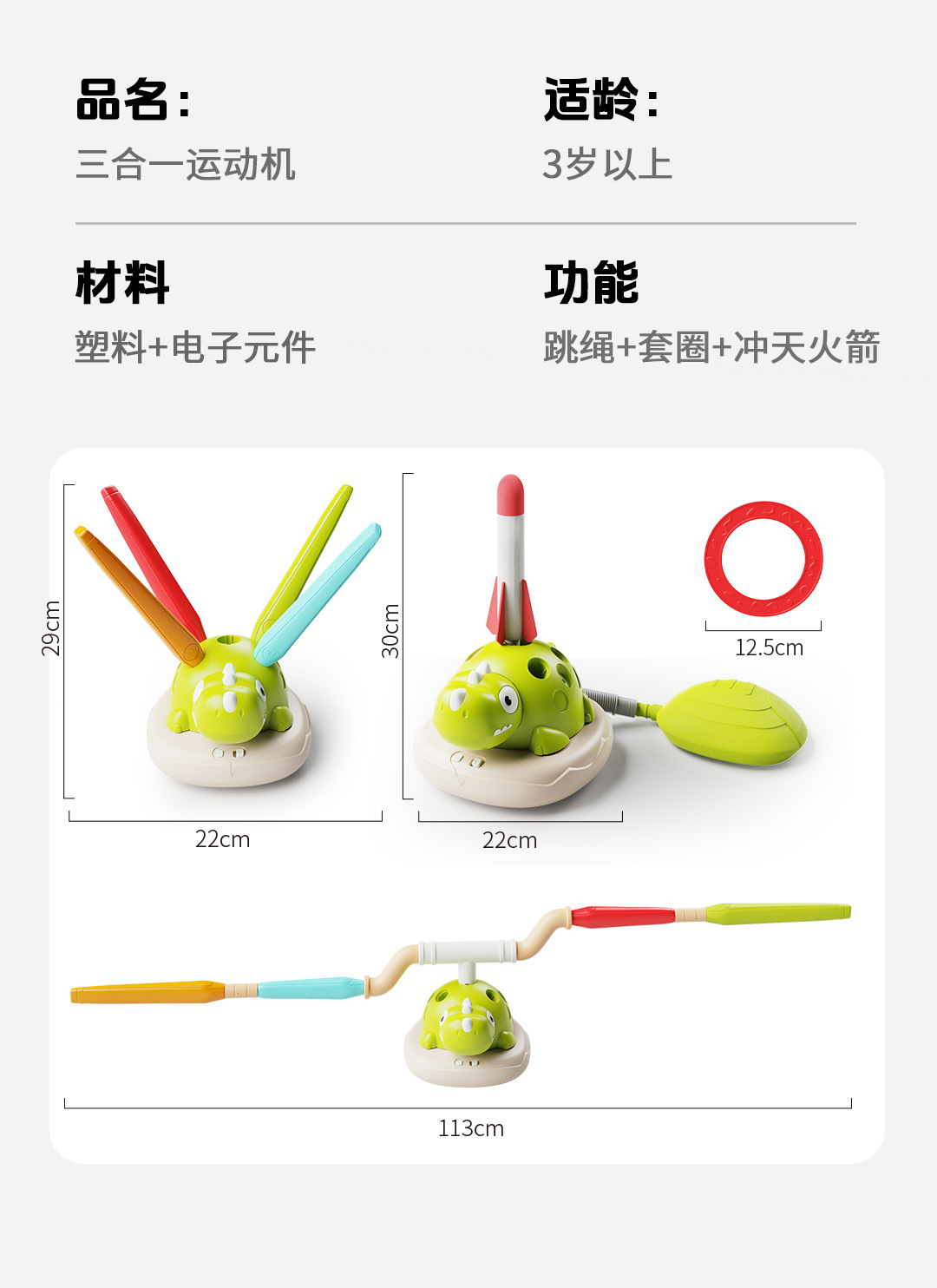 dinosaur three-in-one exercise machine (ferrule + rope skipping + skyrocket) chinese version