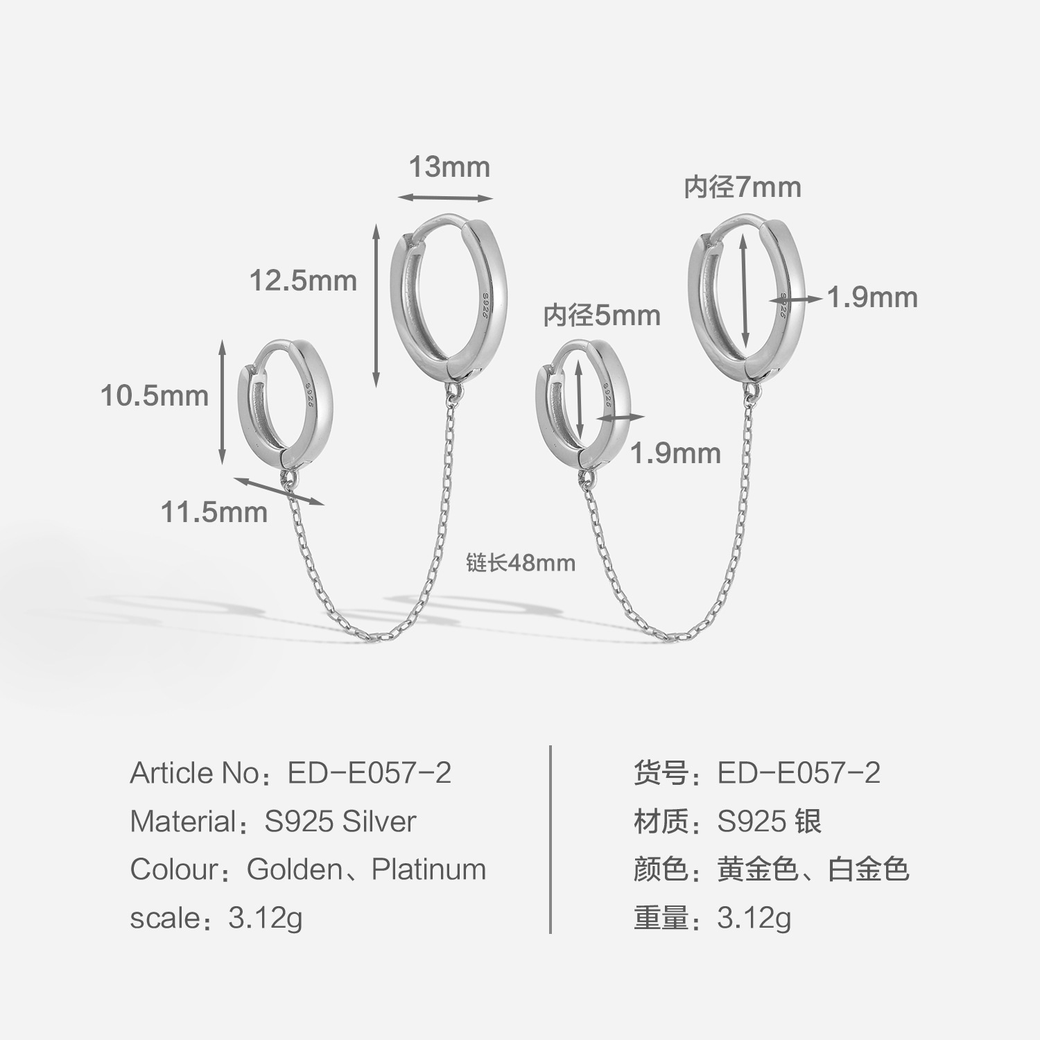| 925 silver | CN¥ 67.68 | 9984 pair available |