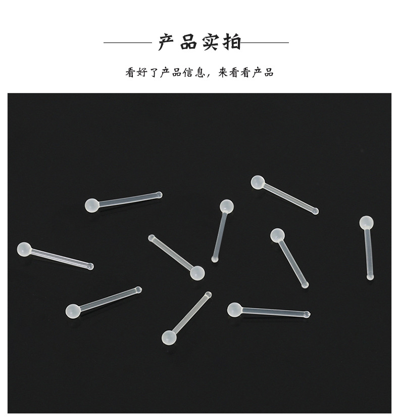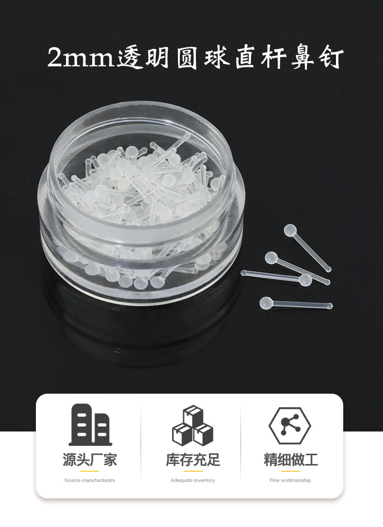 2mm transparent ball straight rod nose stud/long