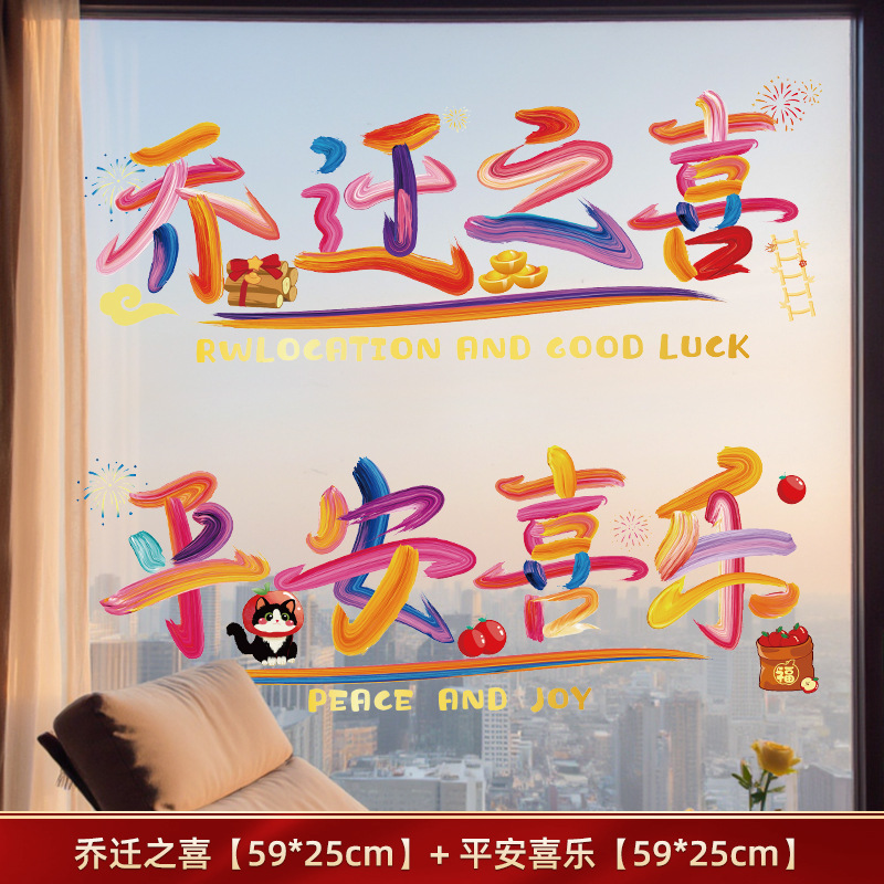 housewarming happiness + ping an joy (horizontal version) calligraphy window flower