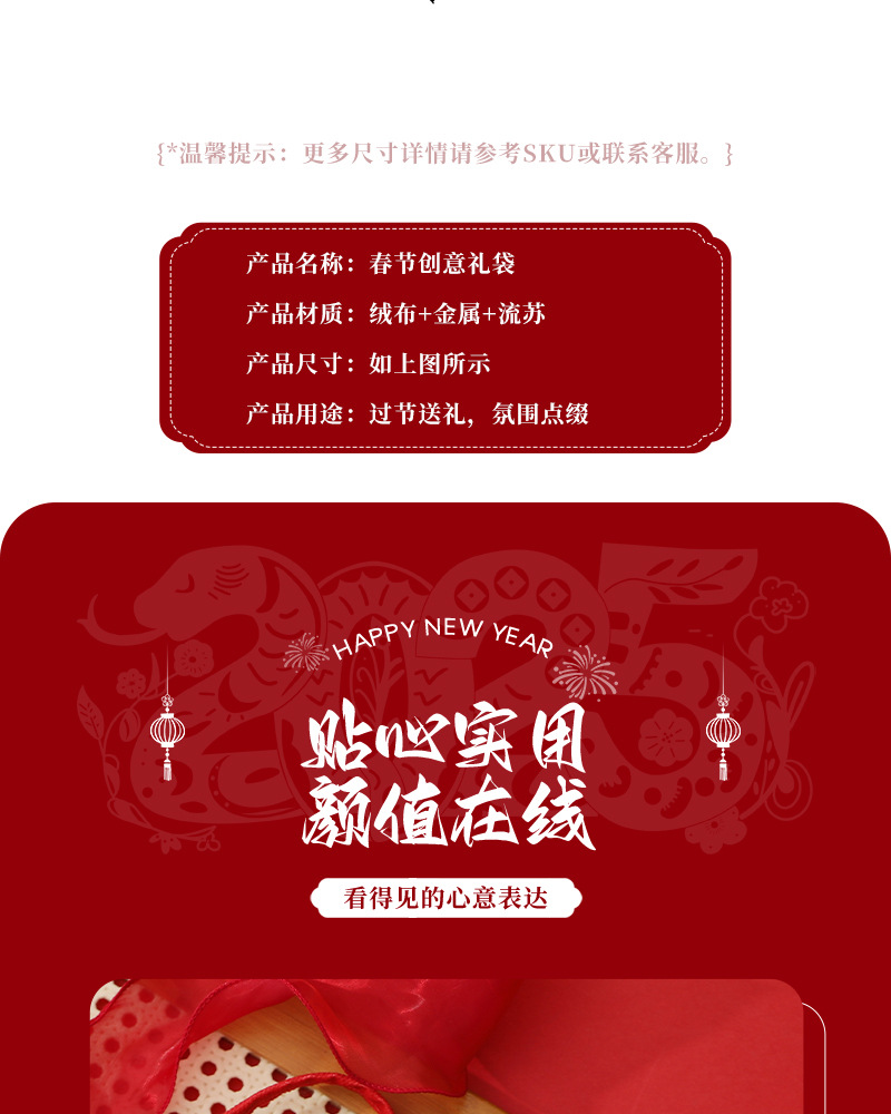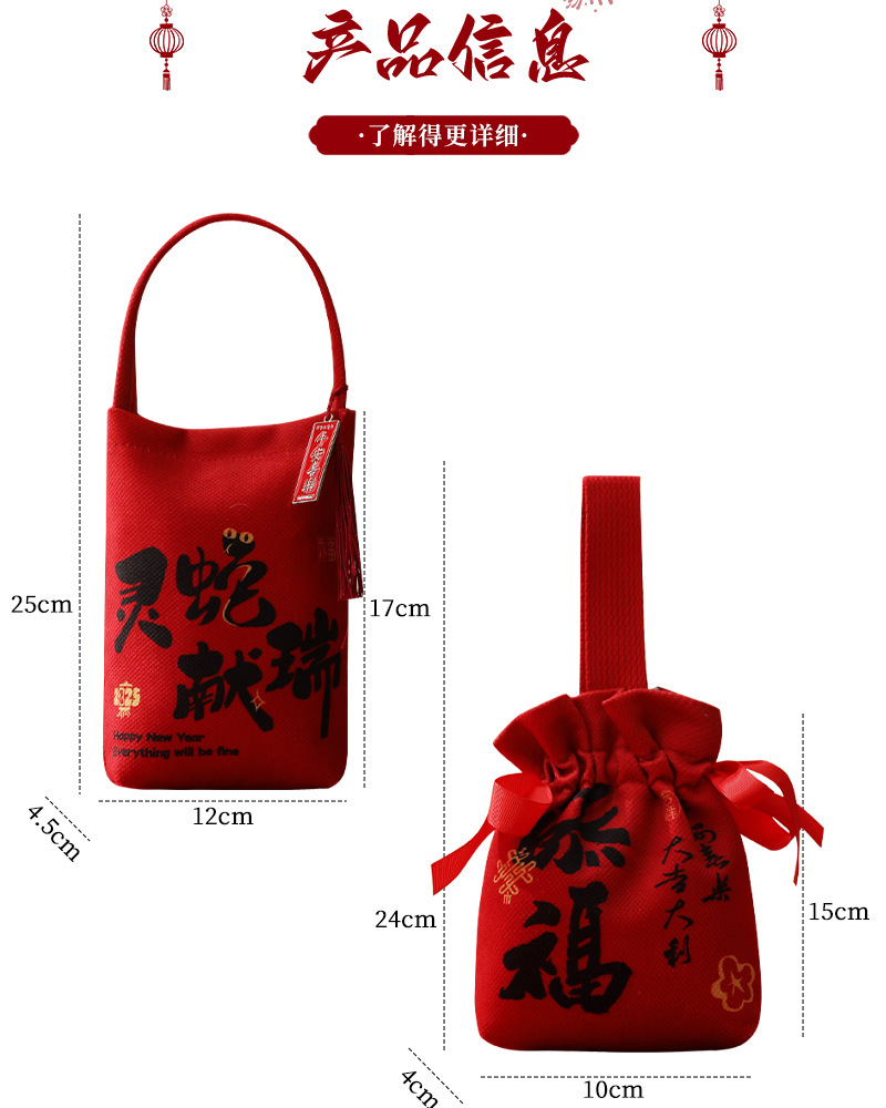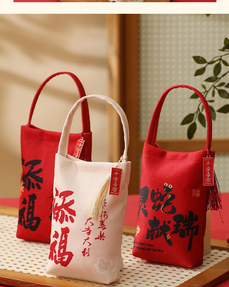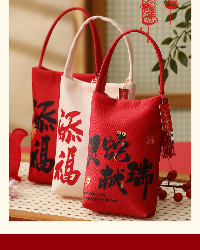 flannel handbag-spirit snake blessing wine red