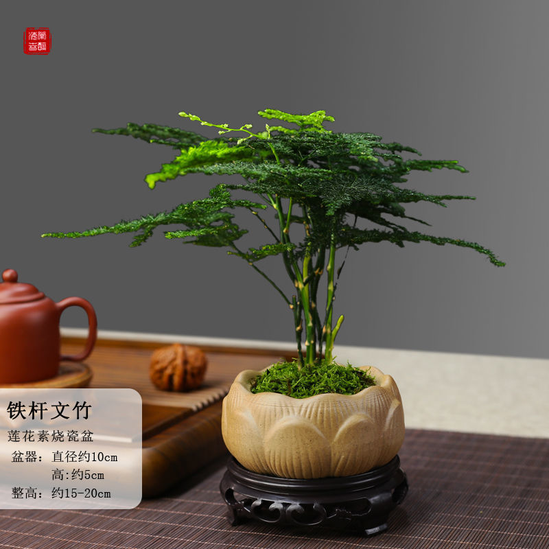 modeling asparagus fern + lotus shaped flower pot + moss + round base