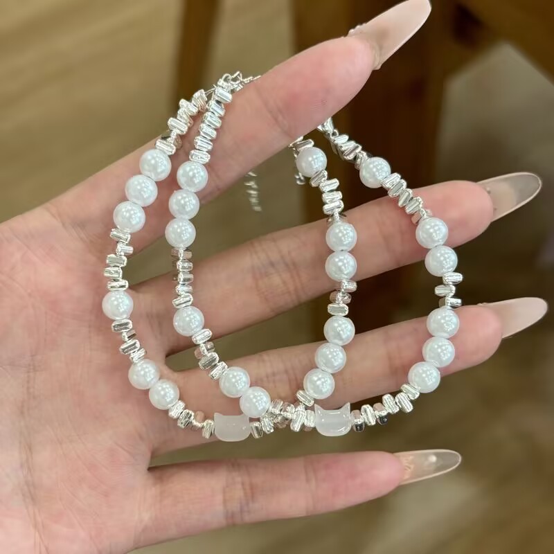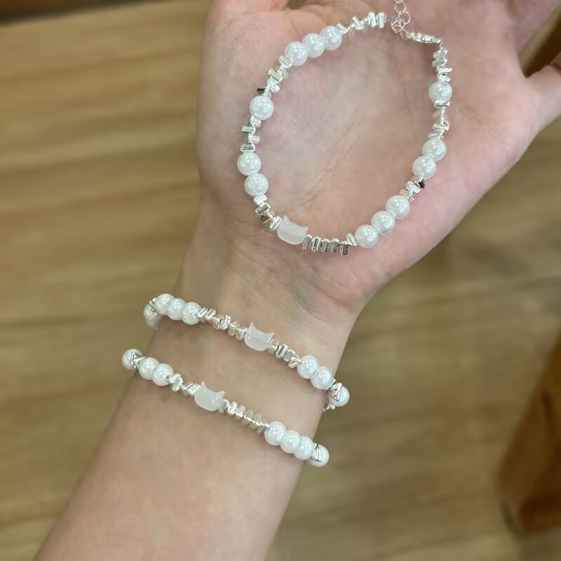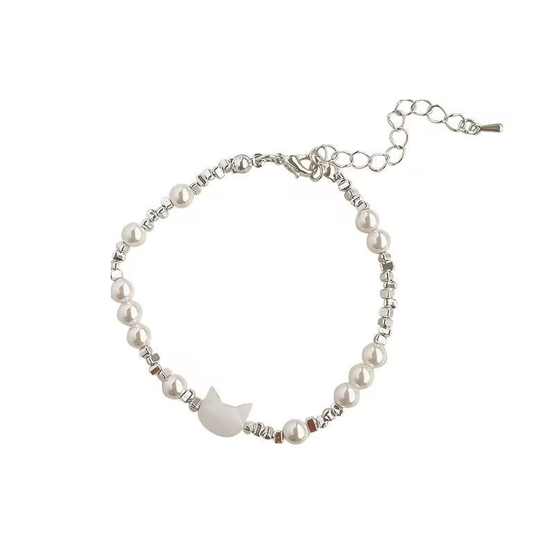 s155 silver cat head bracelet