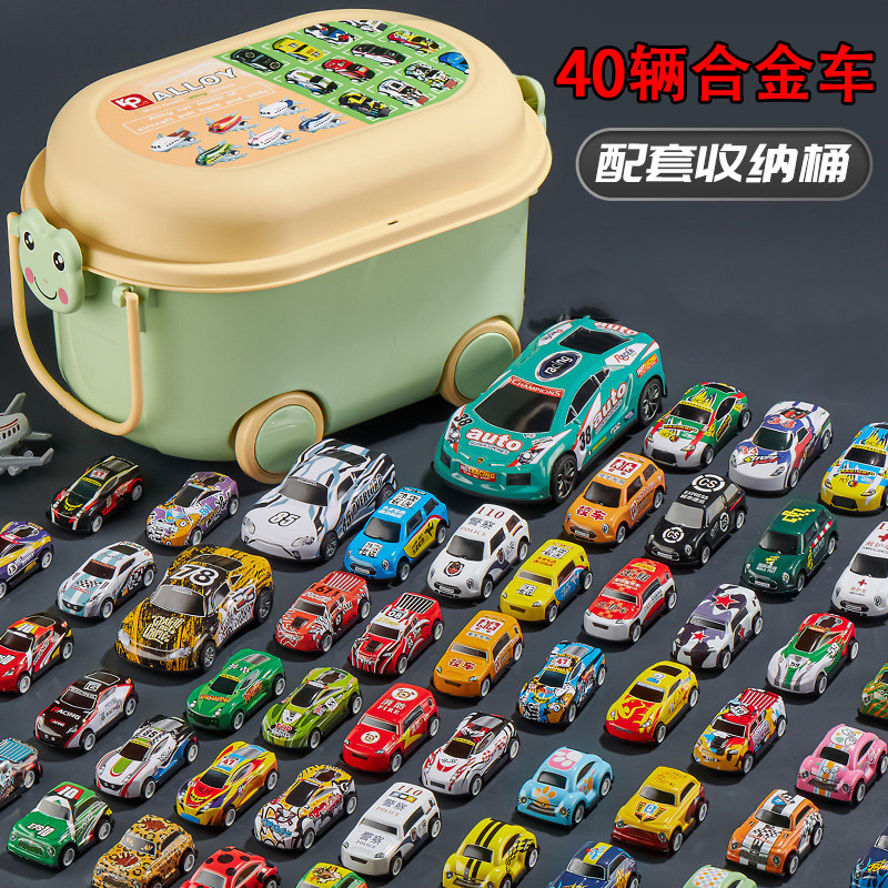40 pcs 6.8cm pull back car + storage bucket