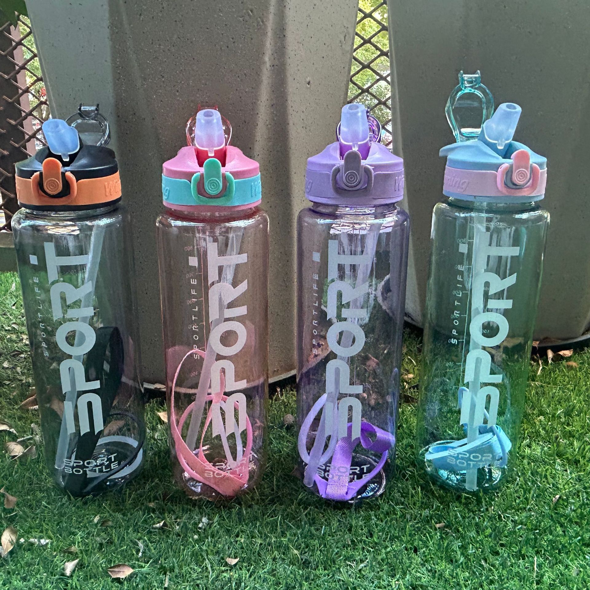 1000ml transparent large capacity bounce cover leak-proof straw outdoor plastic water bottle portable sports kettle