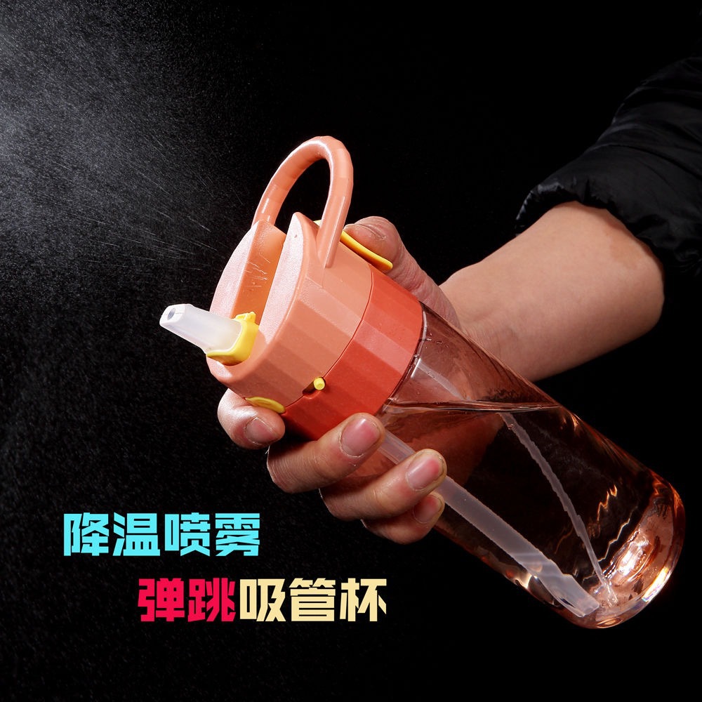 tiktok summer spray cup pc plastic cup outdoor fitness sports water bottle duckbill bounce cup with straw