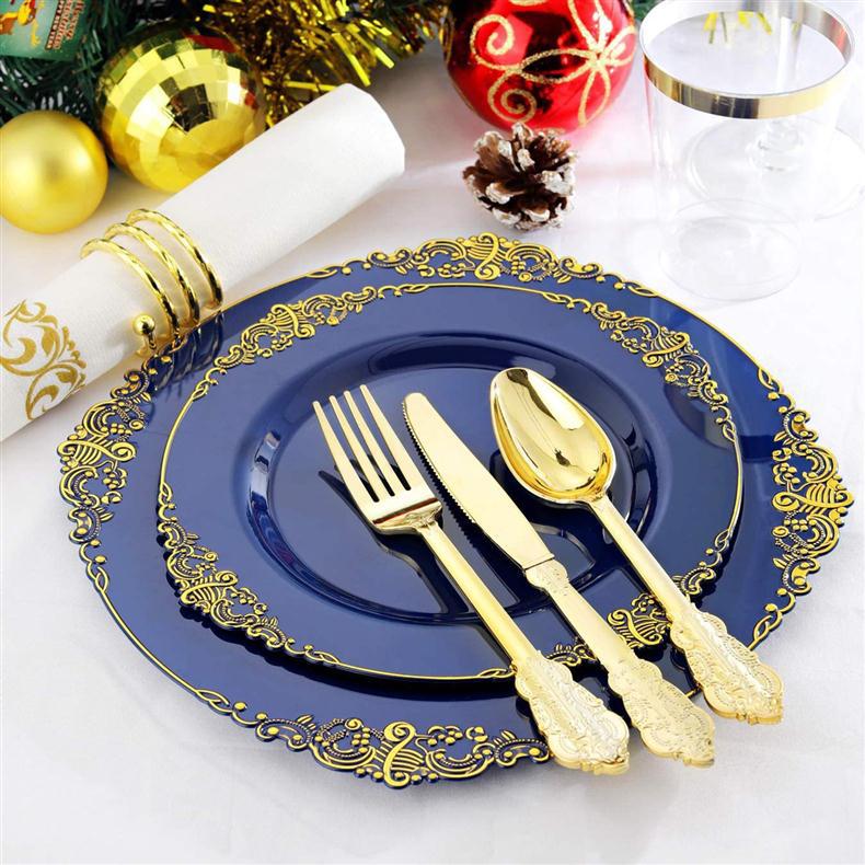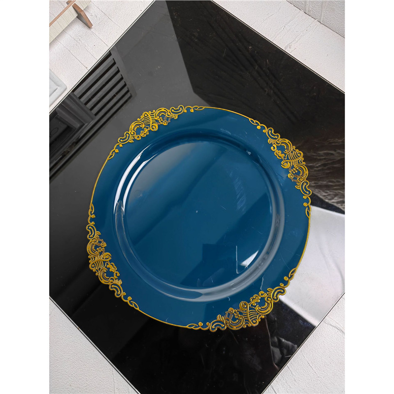 10.25-inch 26cm navy blue bronzing edge dragon pattern relief plate 1