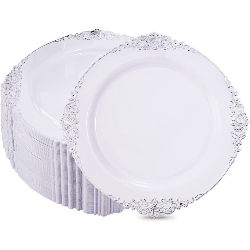 10.25-inch 26cm white hot silver edge dragon pattern relief plate 1