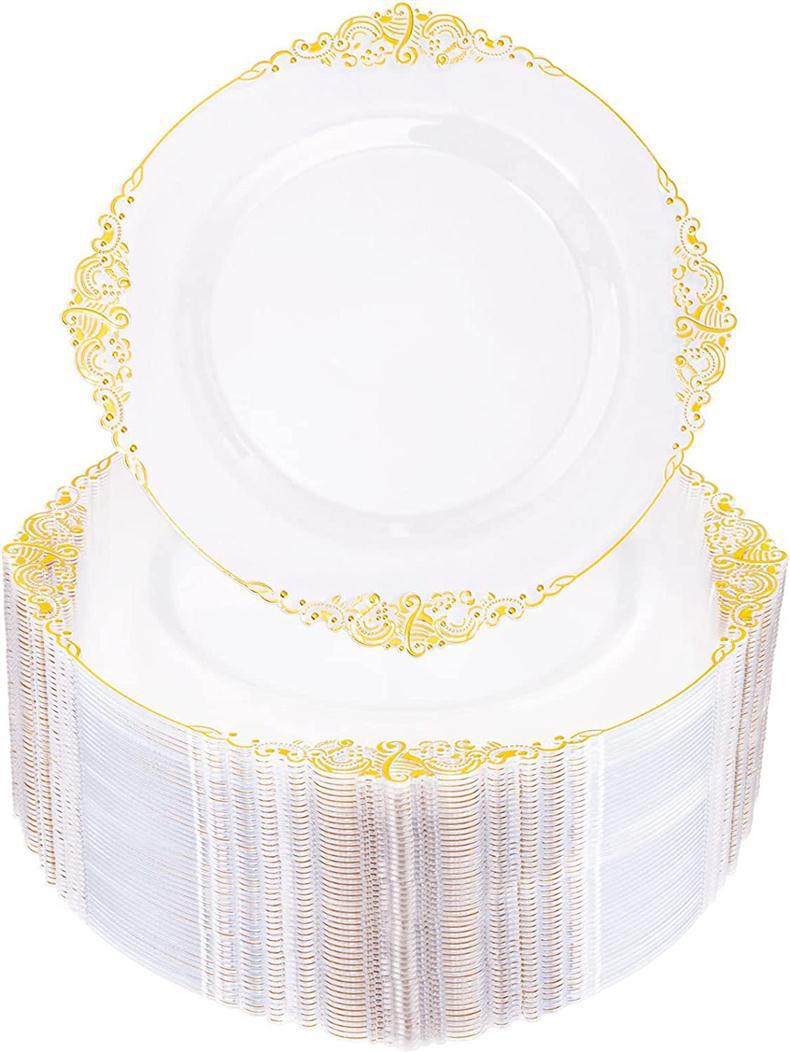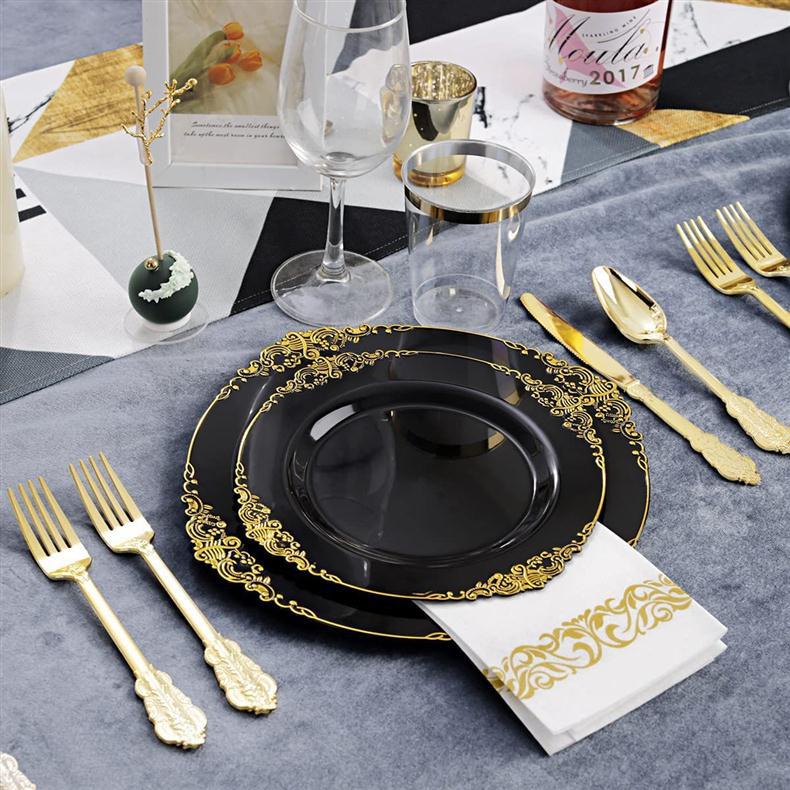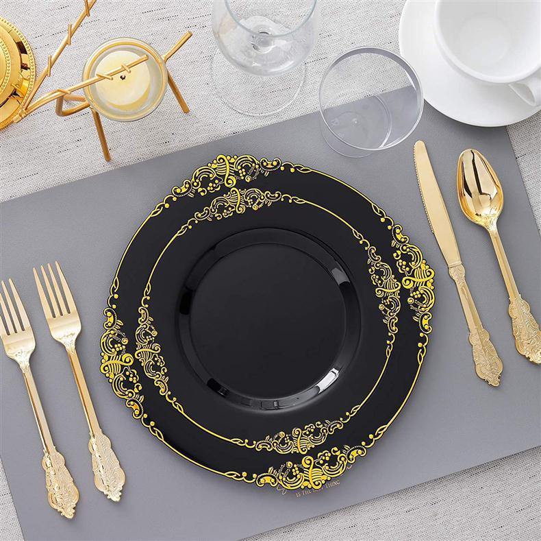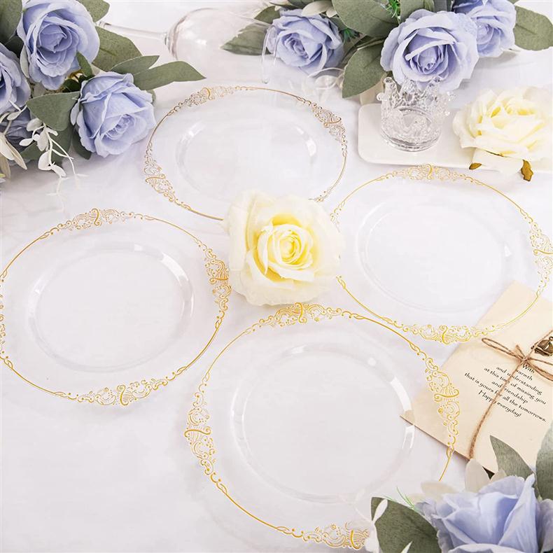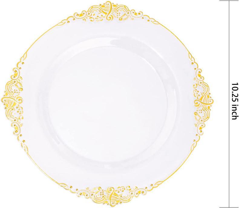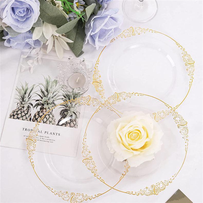 10.25-inch 26cm transparent hot rose golden edge dragon pattern relief plate 1