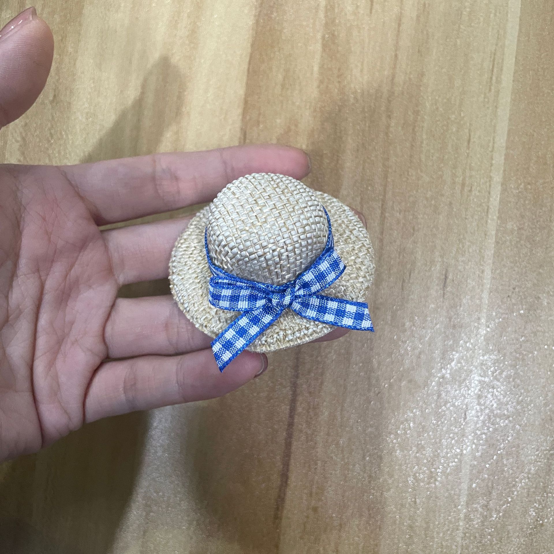 blue grid bow straw hat