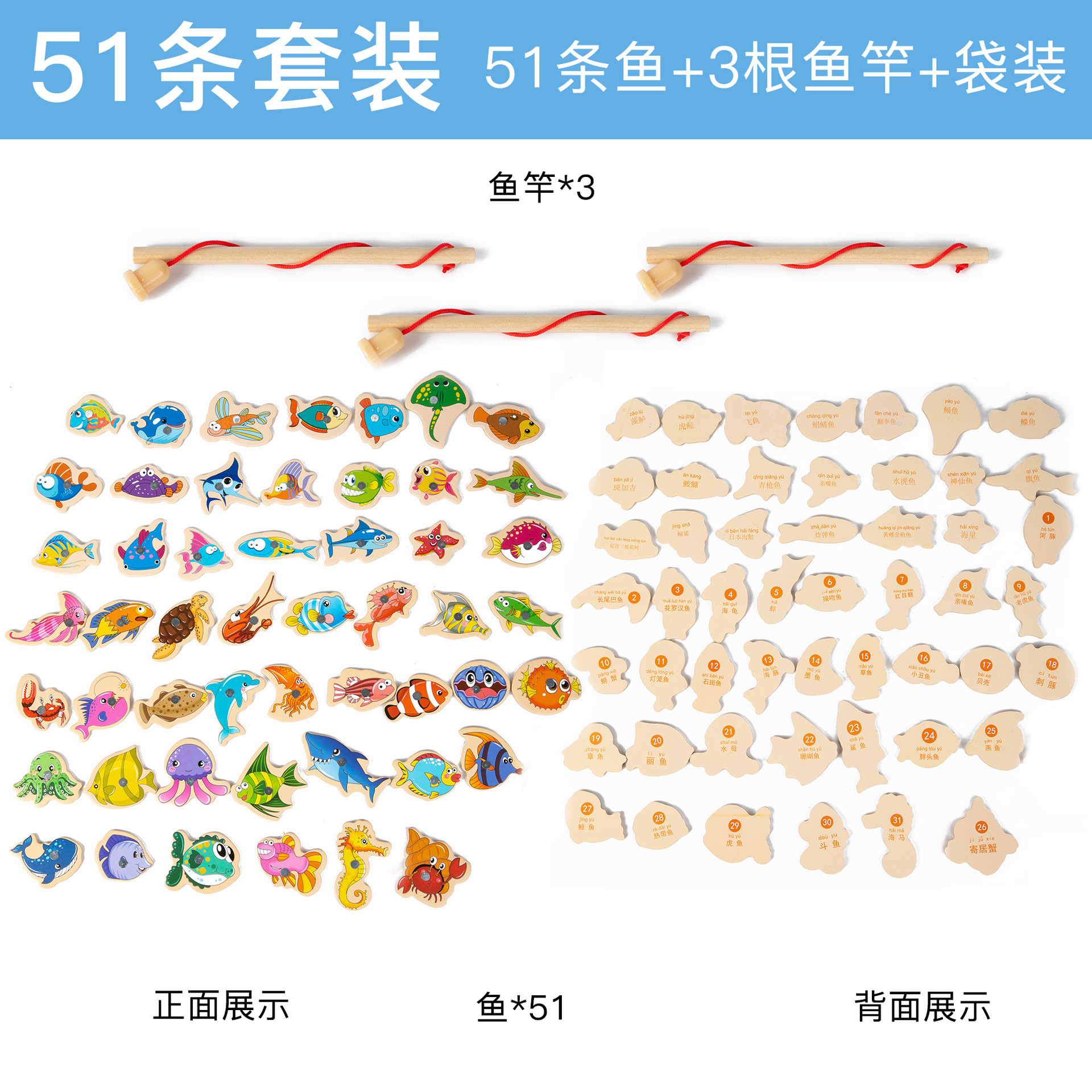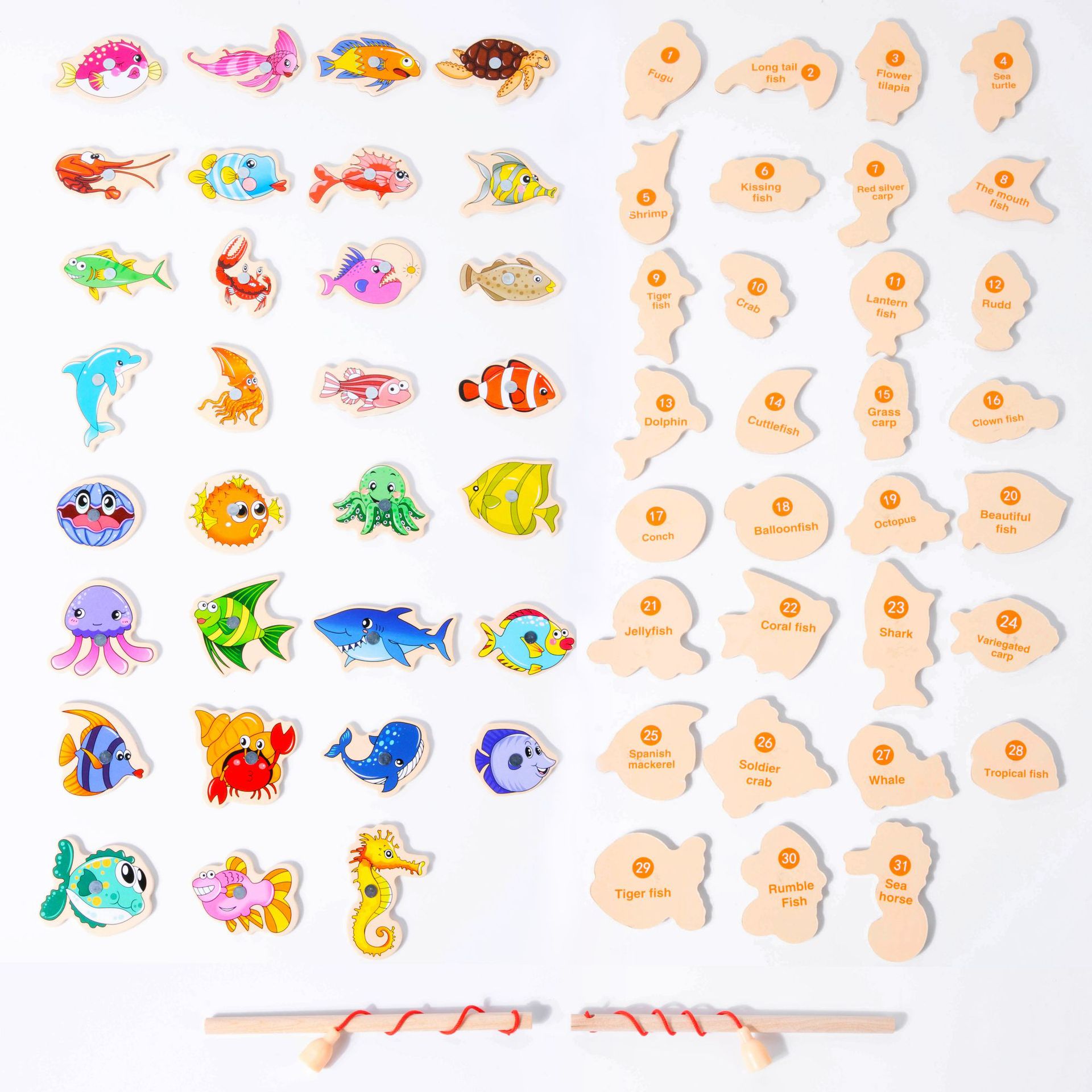 [bag] 31 magnetic fishing bars and 2 rods (english)