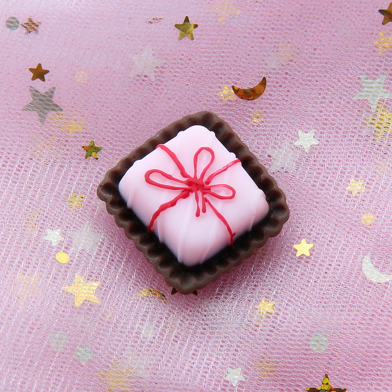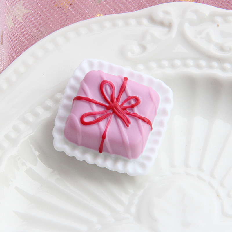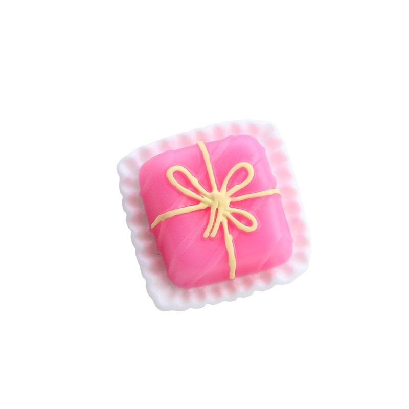 coffee bottom-pink cake + red ribbon