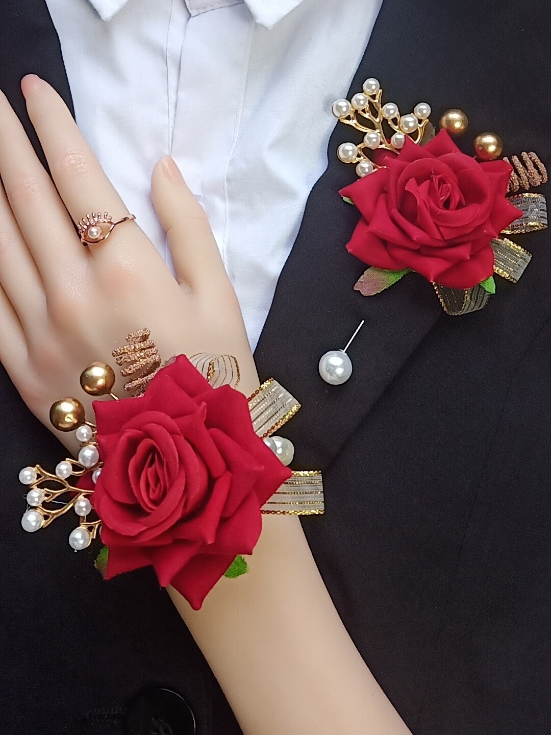 red corsage + wrist flower starry double clip buckle
