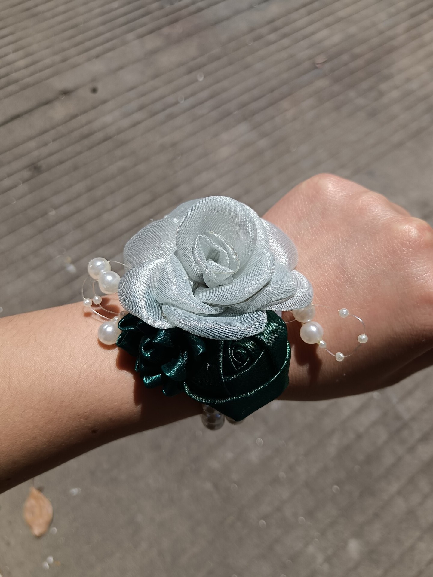 a- green corsage + wrist flower