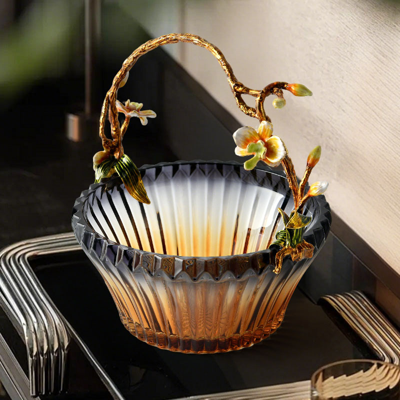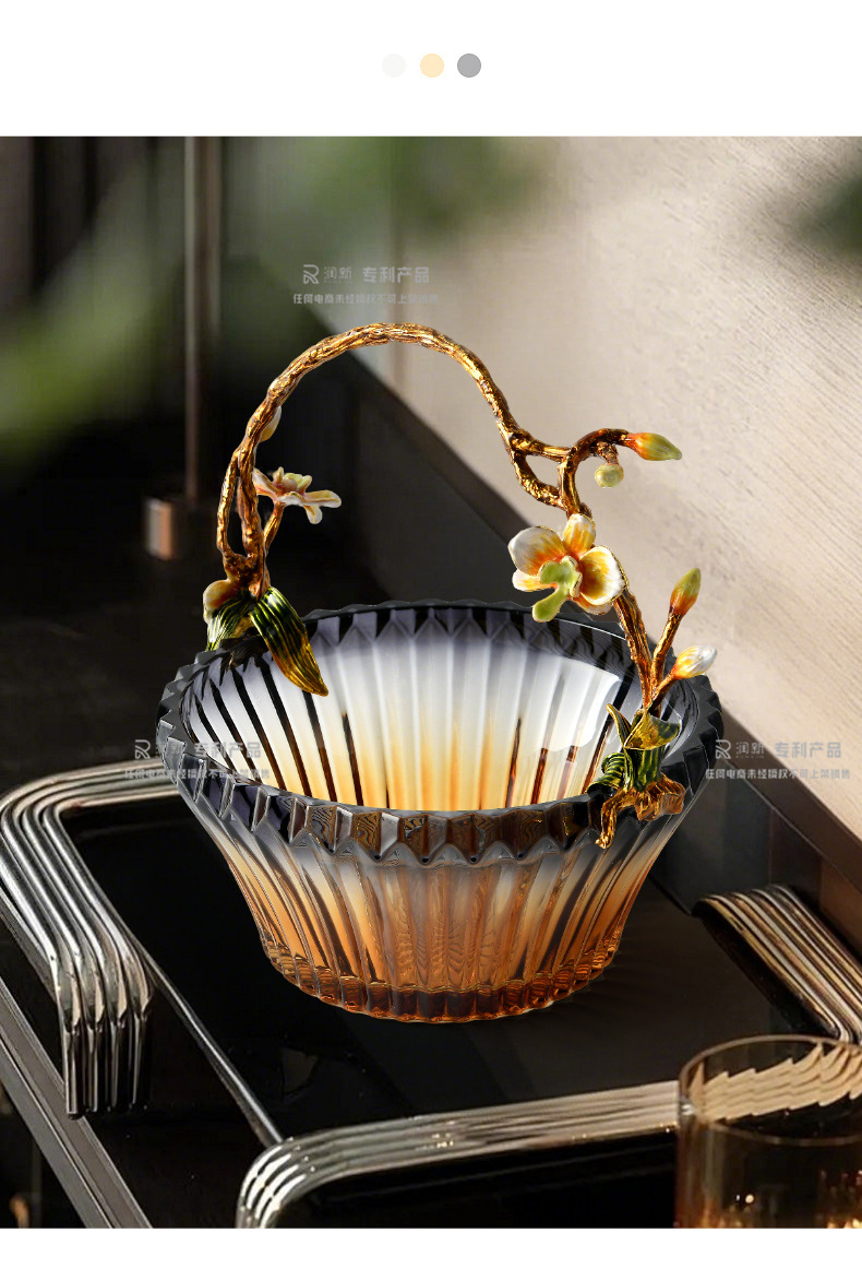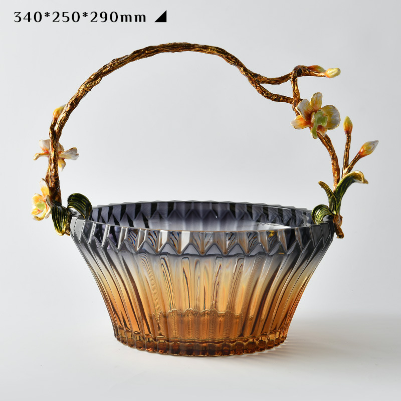 light luxury creative fruit plate enamel glass cabas fruit plate living room decoration tea table high-grade dried fruit snack storage
