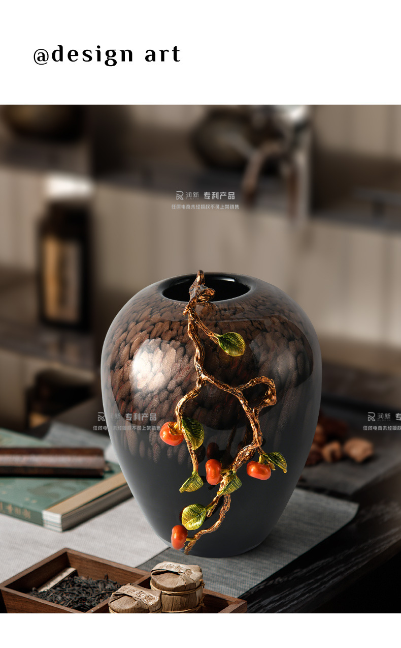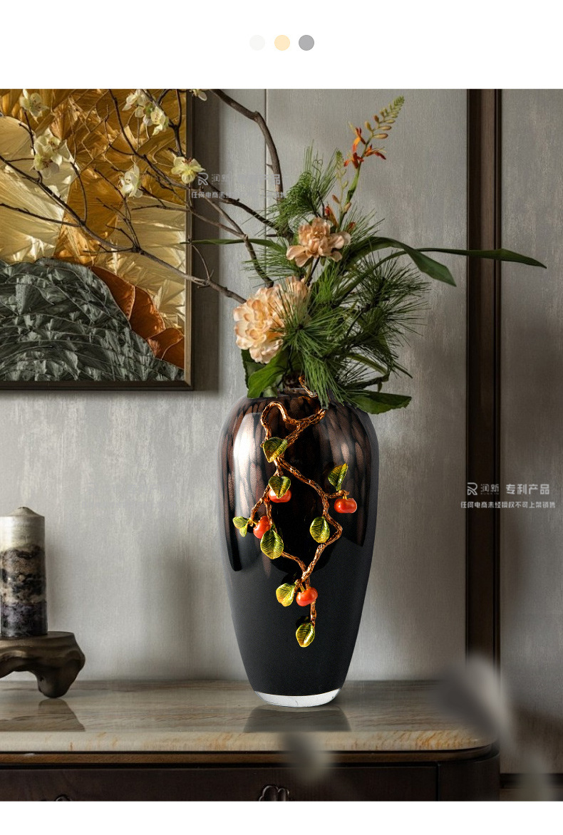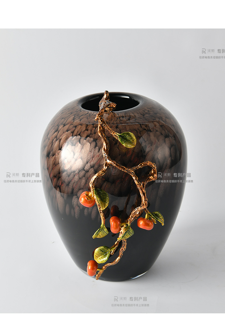 living room tv cabinet wine cabinet entrance decoration high-grade flower arrangement decoration housewarming gifts enamel persimmon vase