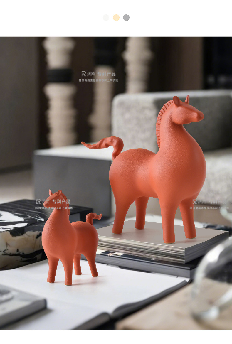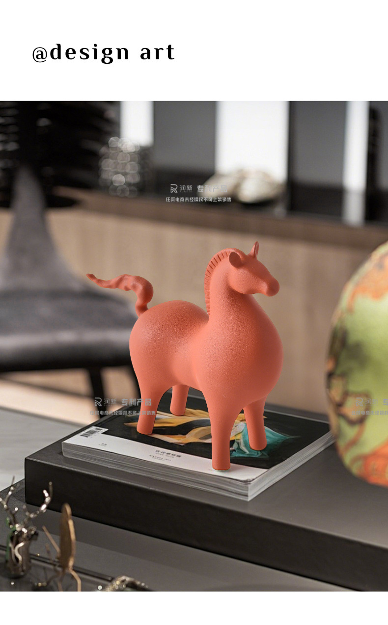 creative new chinese style living room decoration ceramic tangma decoration light luxury high-end wine cabinet office entrance home ornament
