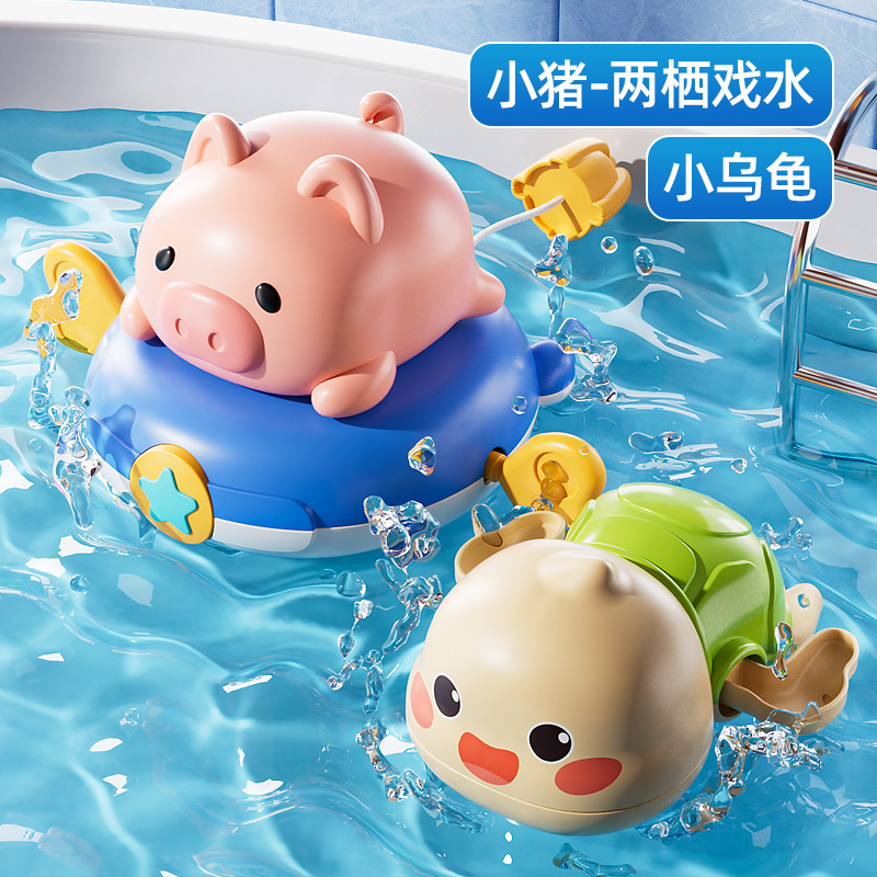 water shower set of four [surfboard pink pig + submarine shower rabbit + small yellow duck + small green turtle]]