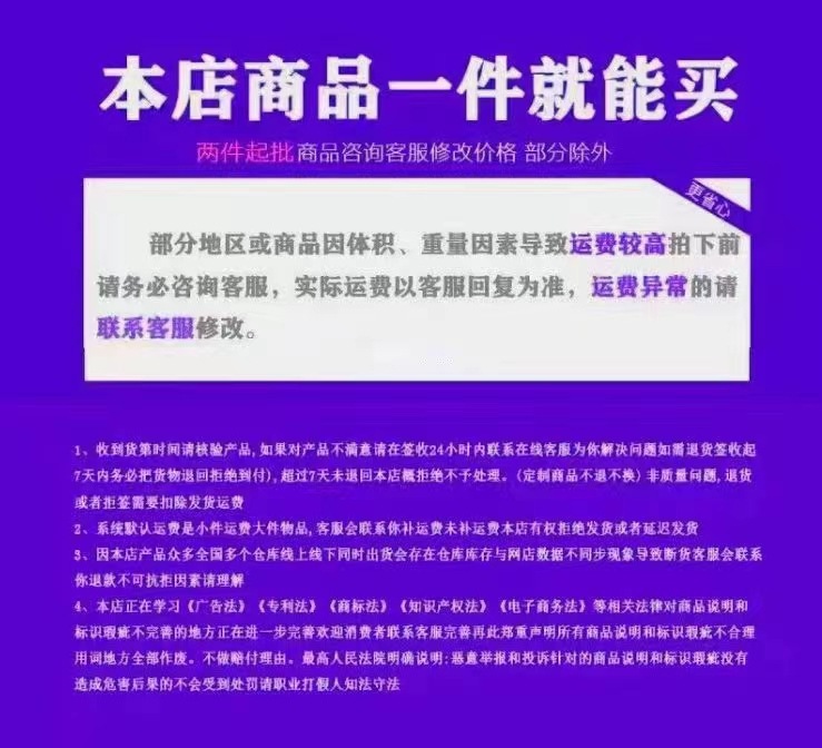 Small business operation, low profit margin, if the sold products have damage, please take photos and contact customer service for after-sales processing. Due to the large number of styles, there may be individual styles out of stock. If there is a stock shortage and we cannot contact the customer, we will send the available stock first, and if there is a stock shortage, we will contact the customer service for a refund. This store does not support any reason for quality problems, sales, etc. to return the goods. Please note that the 7-day reason only applies to individual self-used customers, and wholesale customers do not enjoy the 7-day reason. Thank you for your cooperation. The price of the small store does not include the opening of the bill. If you need to open the bill or custom, please contact the manager's WeChat.