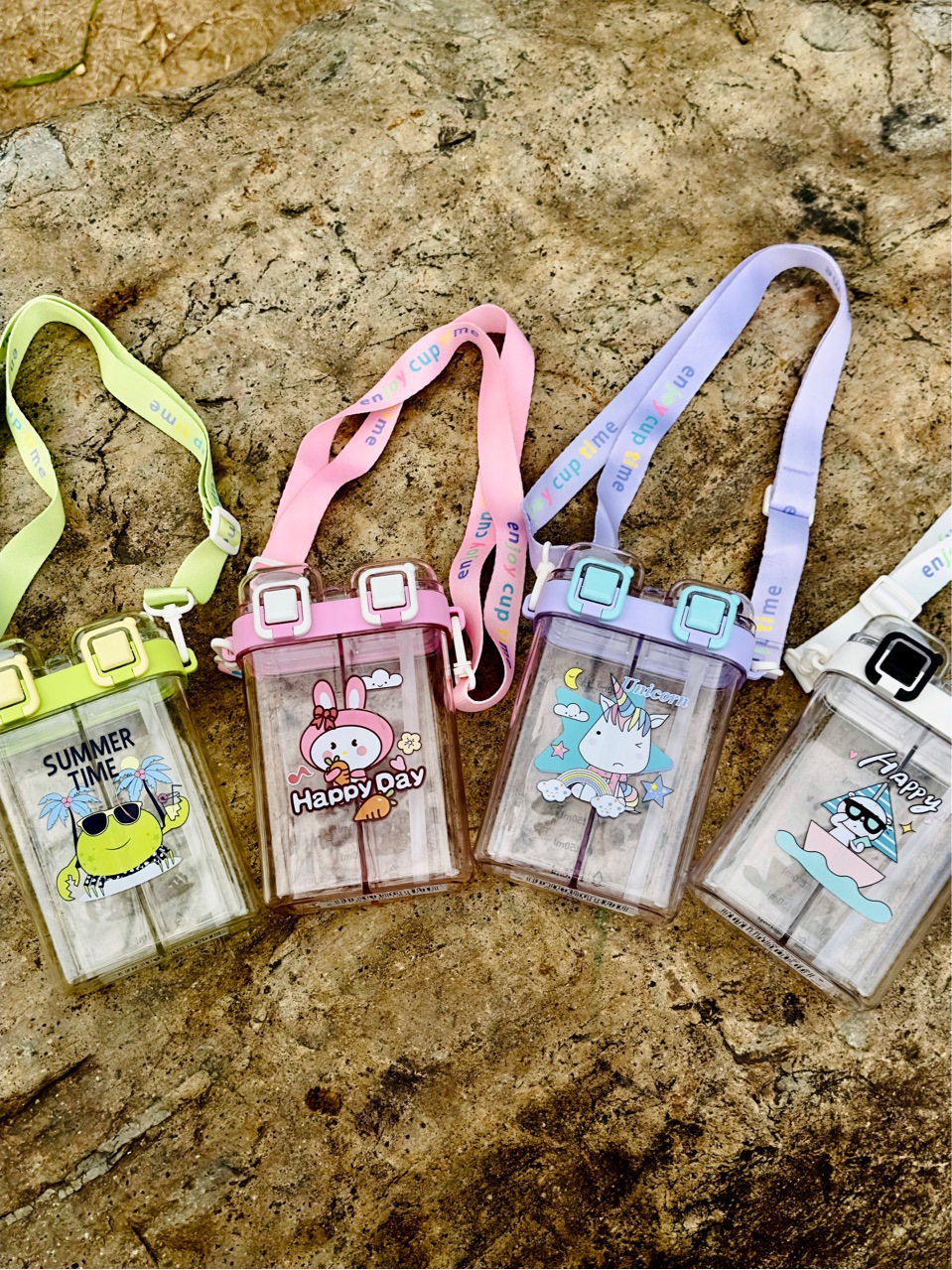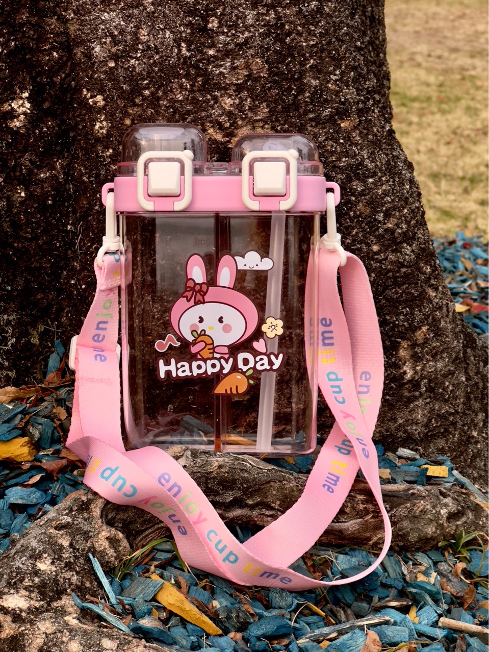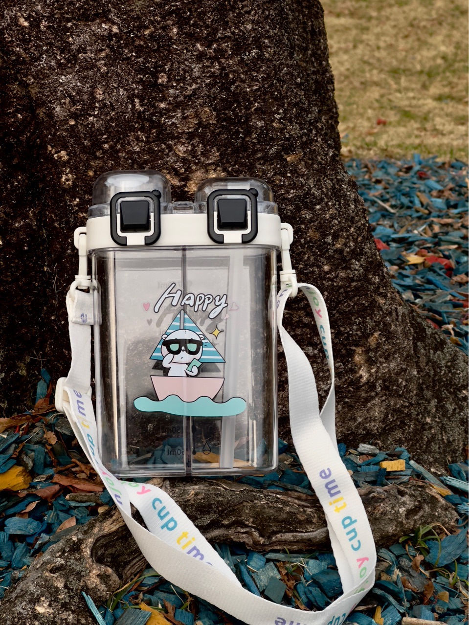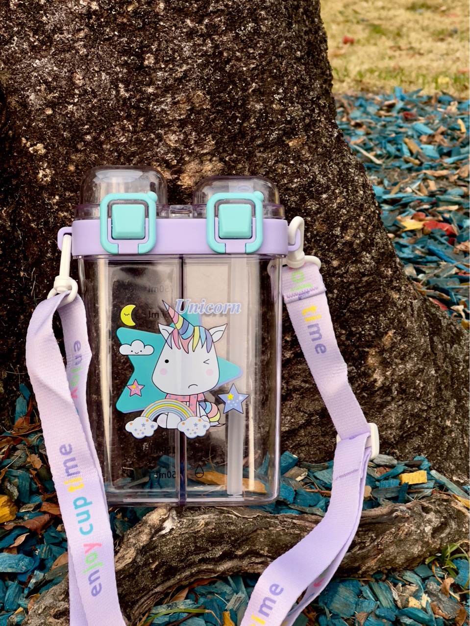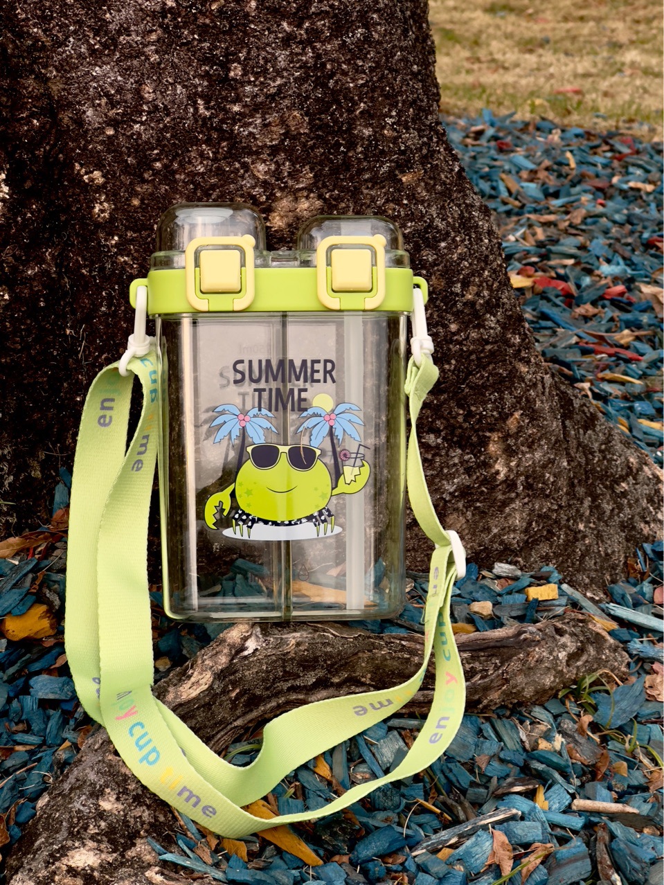 summer harness double warehouse separation cup double drink cartoon printing large capacity portable straw plastic cup