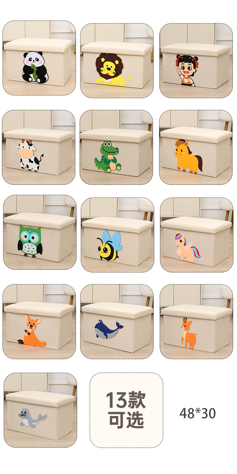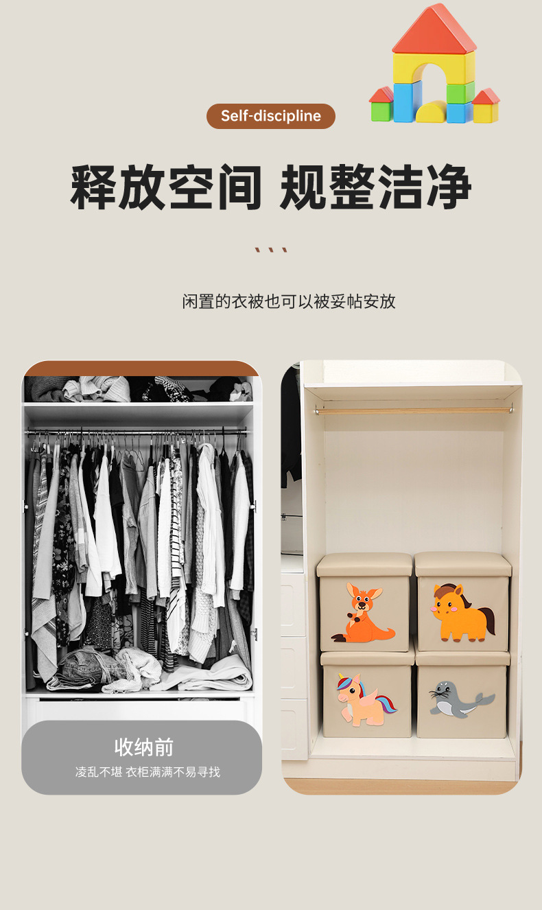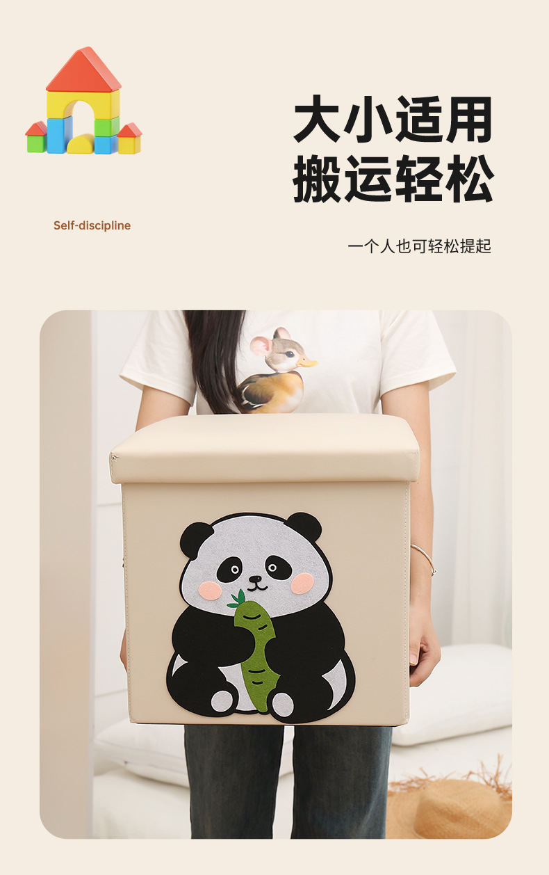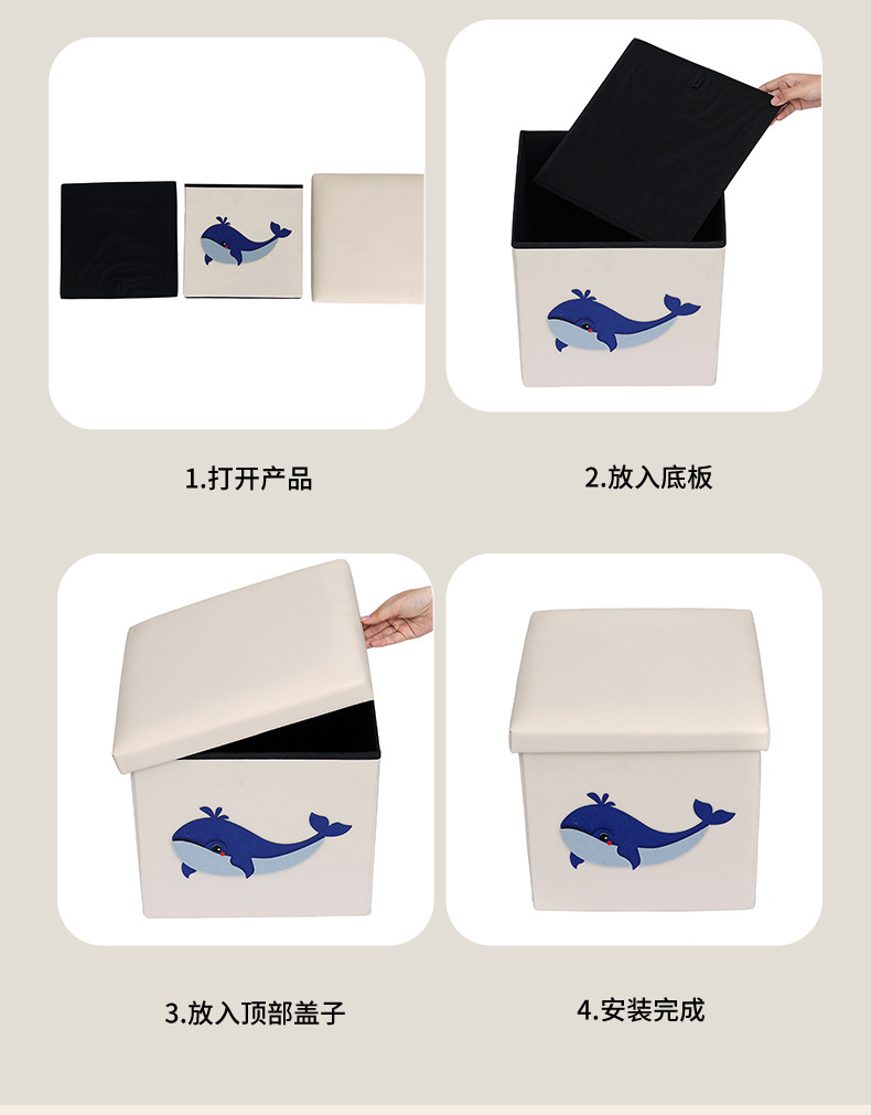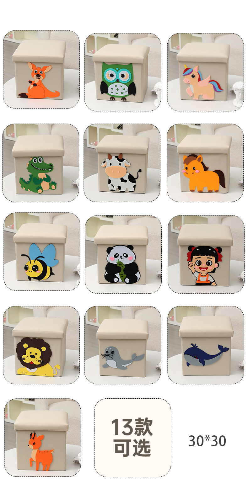New products for children's confidence DIY adhesive cartoon pattern storage stool, the technical fabric can be washed and cleaned, not afraid of children to dirty, can be used to store children's clothes, toys, books, stationery, increase the fun of children's storage, cultivate children's good habits of storage and organization, and can also be used as a stool to sit.